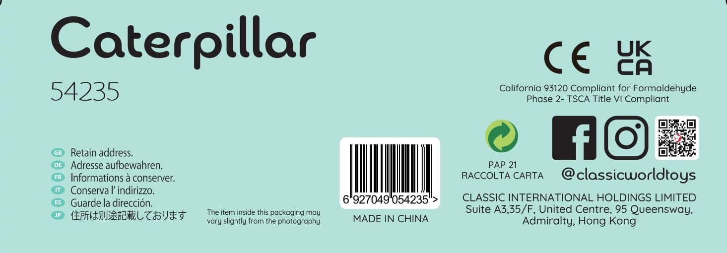 Gąsienica marki Classic World to niewielka zabawka, która jest idealnych rozmiarów, by maluszek mógł swobodnie się nią bawić - zginać, skręcać, oraz układać w przeróżnych pozycjach. Gąsienica składa się z kolorowych segmentów, które połączone są ze sobą w taki sposób, by można było ją układać na wszelkie możliwe sposoby. Genialna drewniana zabawka, która wciąga na wiele godzin.