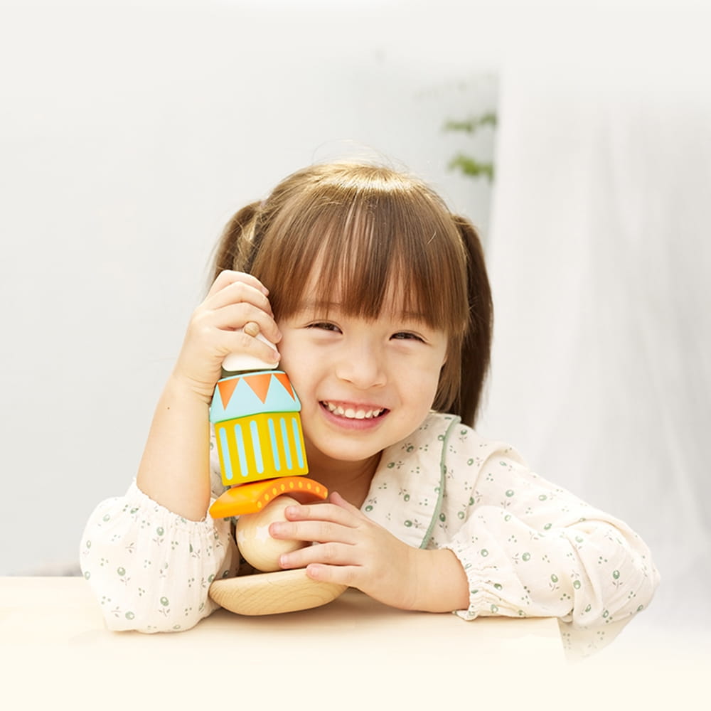 - - Zabawa polega na ułożeniu wszystkich elementów na paliku w taki sposób aby wesoły klaun był na górze jako akrobata.