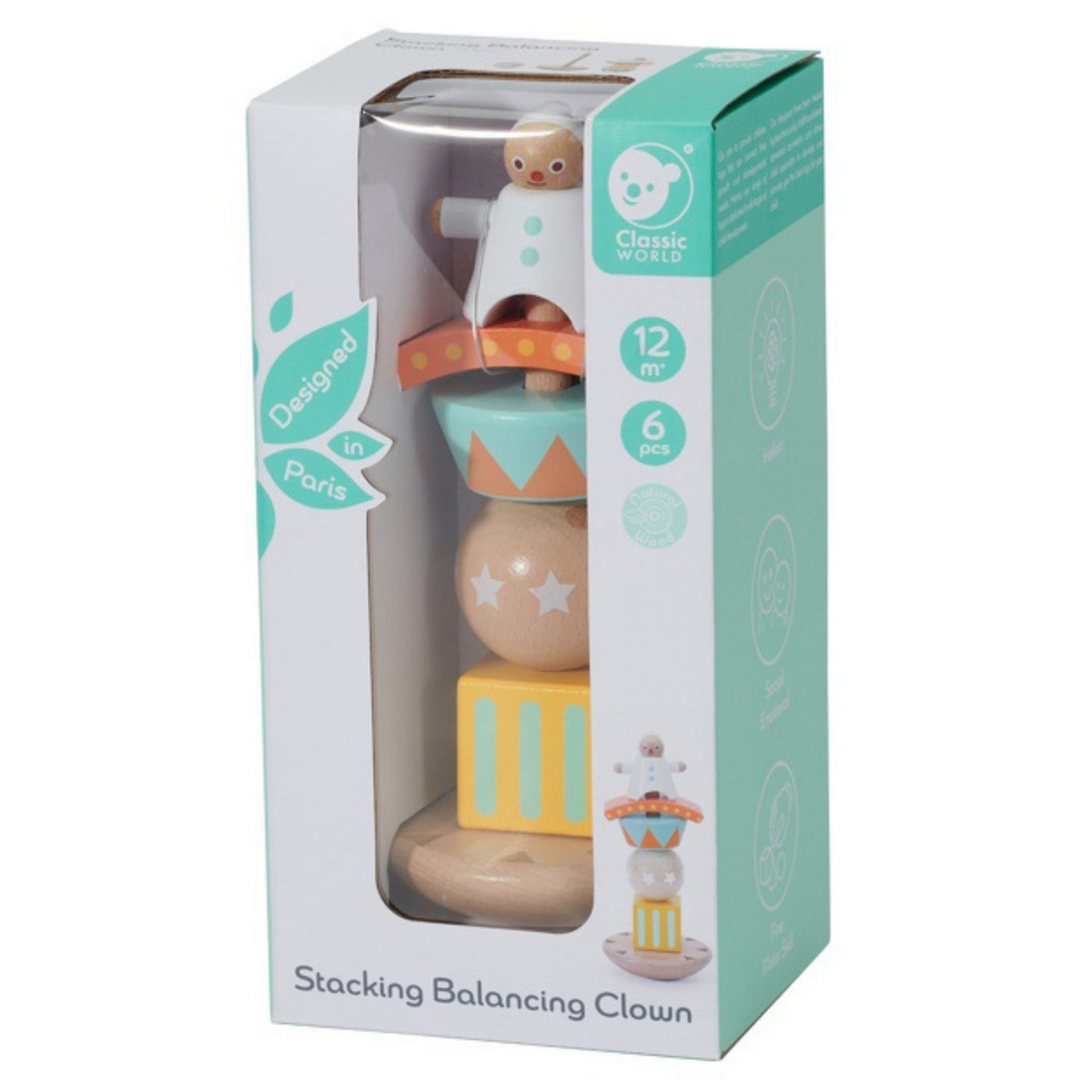 CLASSIC WORLD Drewniana Układanka Piramidka Klocki Balansujący Wesoły Klaun