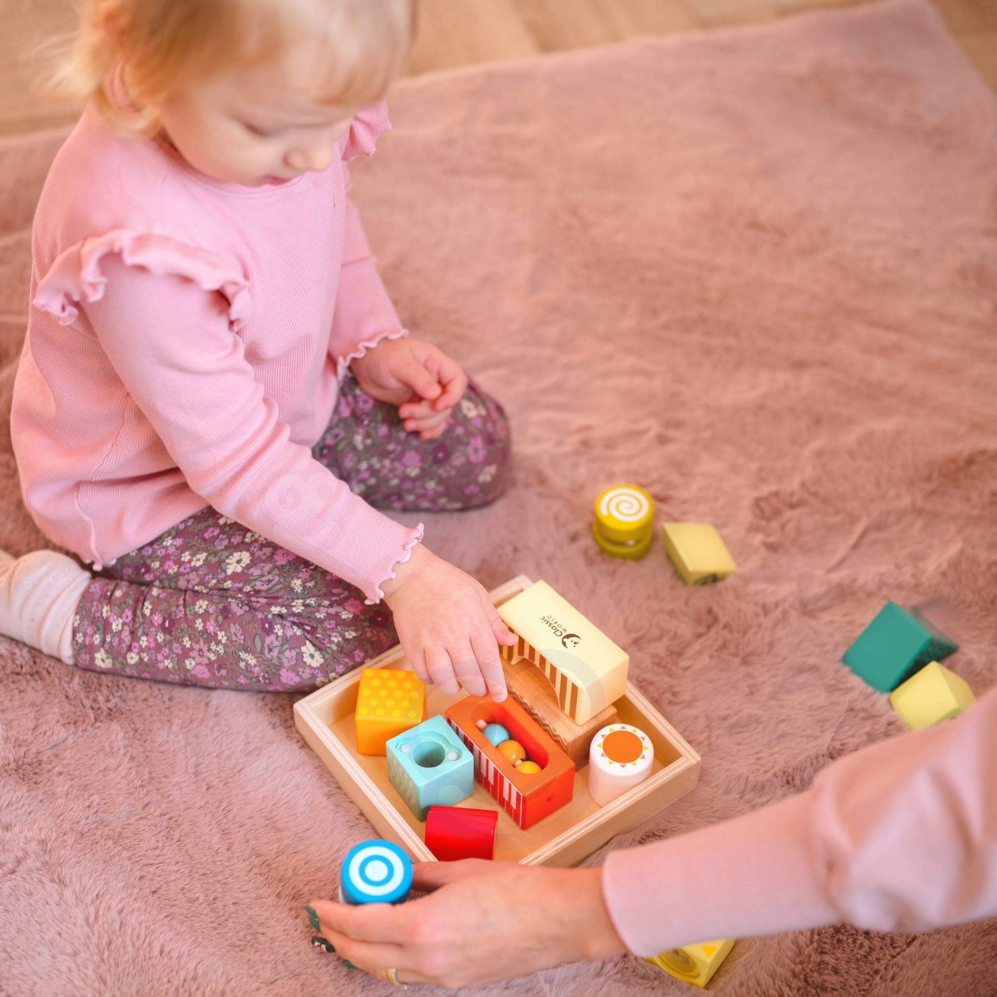 CLASSIC WORLD Drewniane Klocki Sensoryczne 7 Funkcji Układanka Multifunkcyjna Kształty Dźwięk MONTESSORI 14 el.