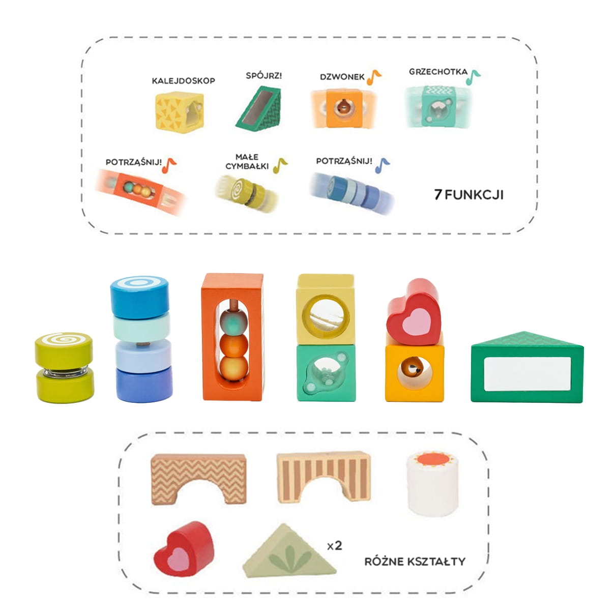 - - naukę kształtów, kolorów, rozmiarów i funkcjonalności