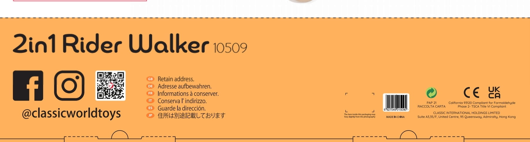 CLASSIC WORLD Drewniany Jeździk MONTESSORI Pchacz 2w1