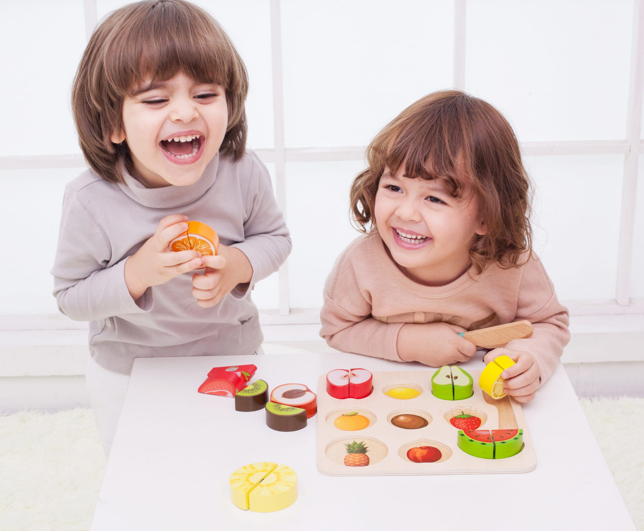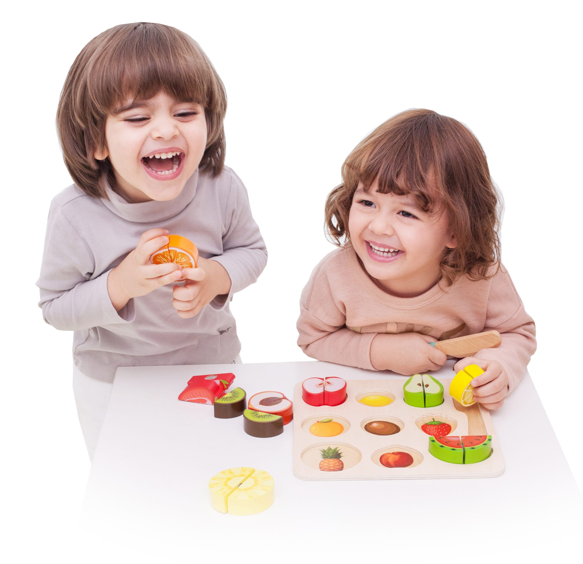 - - Zestaw zawiera 20 elementów, m.in. dwustronną deskę, nożyk i owoce.