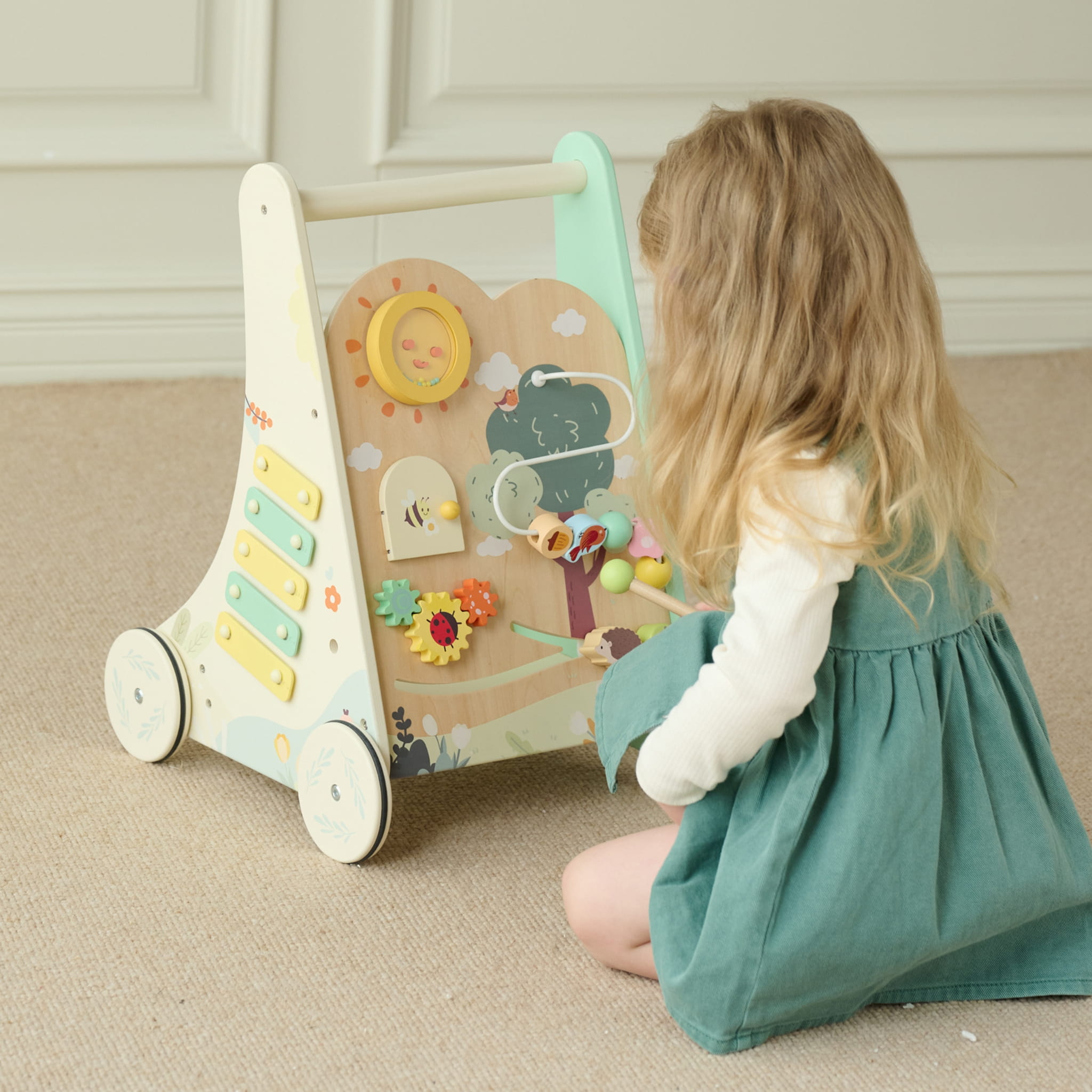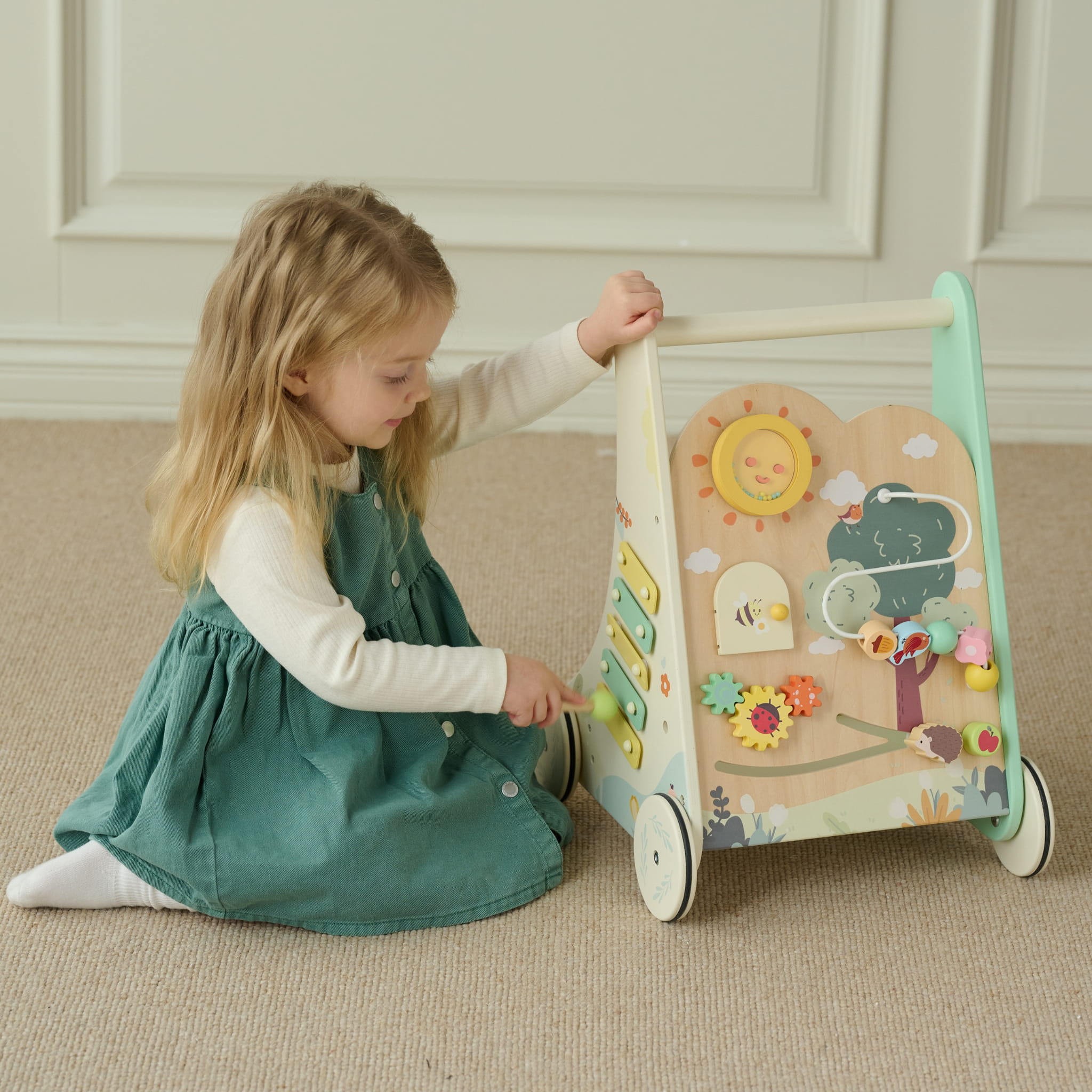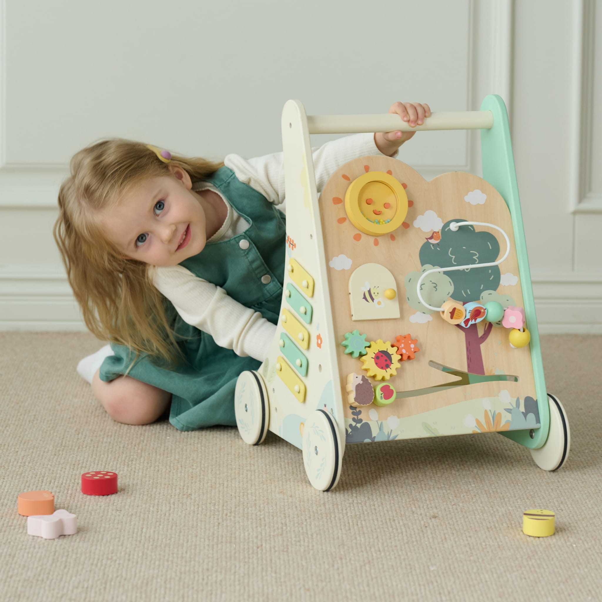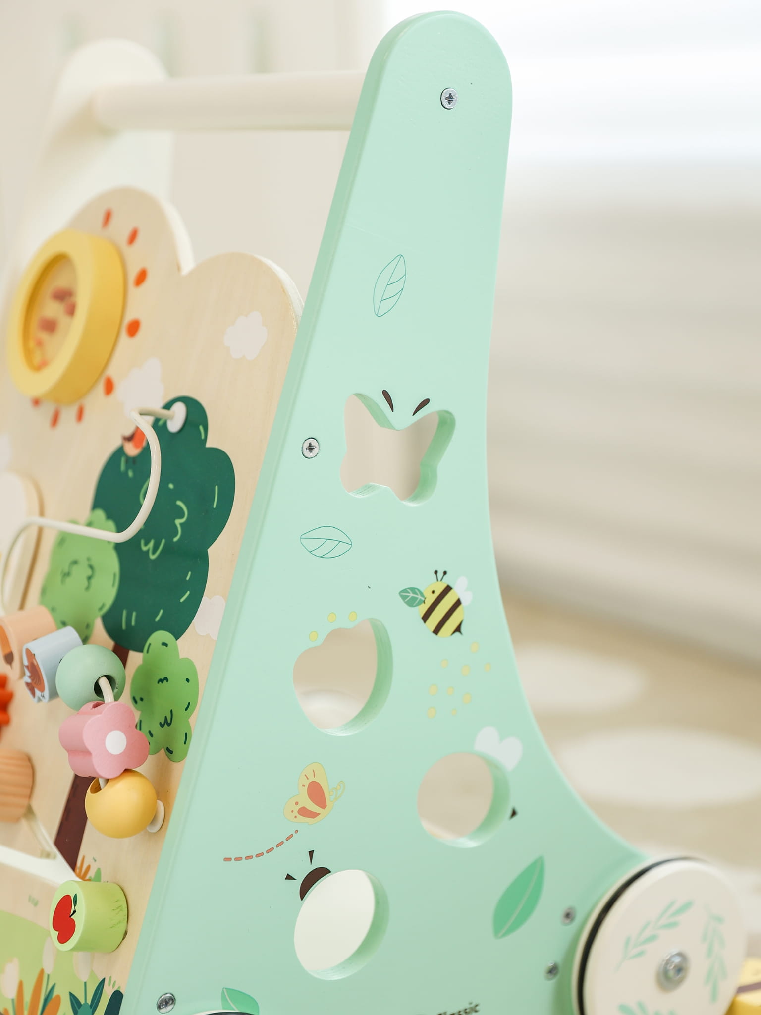 - - Drewniana stabilna konstrukcja, zapewniająca bezpieczna naukę stawiania pierwszych kroków
