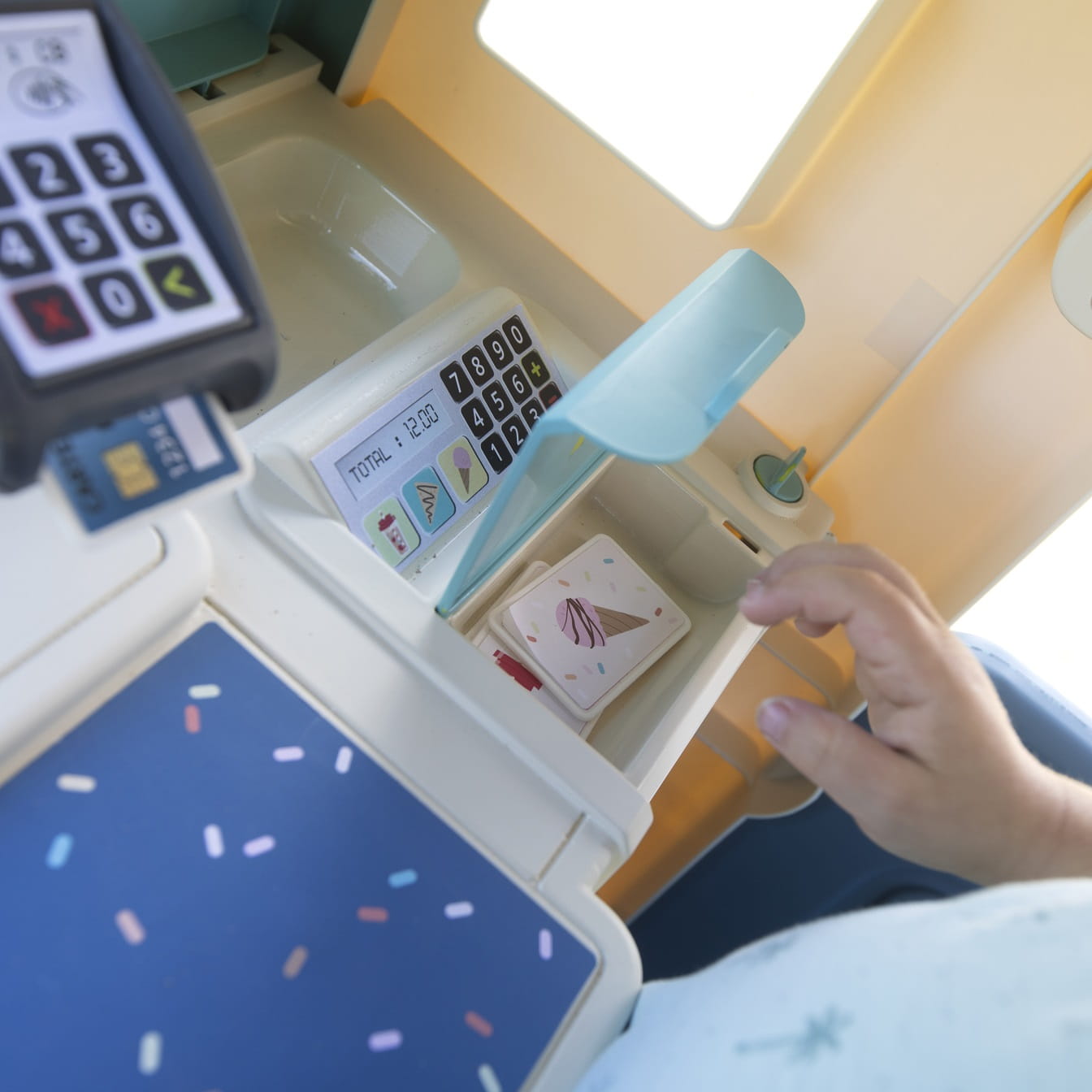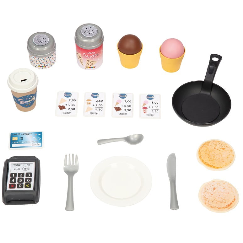 - - w zestawie znajdziemy 18 akcesoriów - naleśniki, lody, posypki, sztućce, karty kredytowe, bilony,