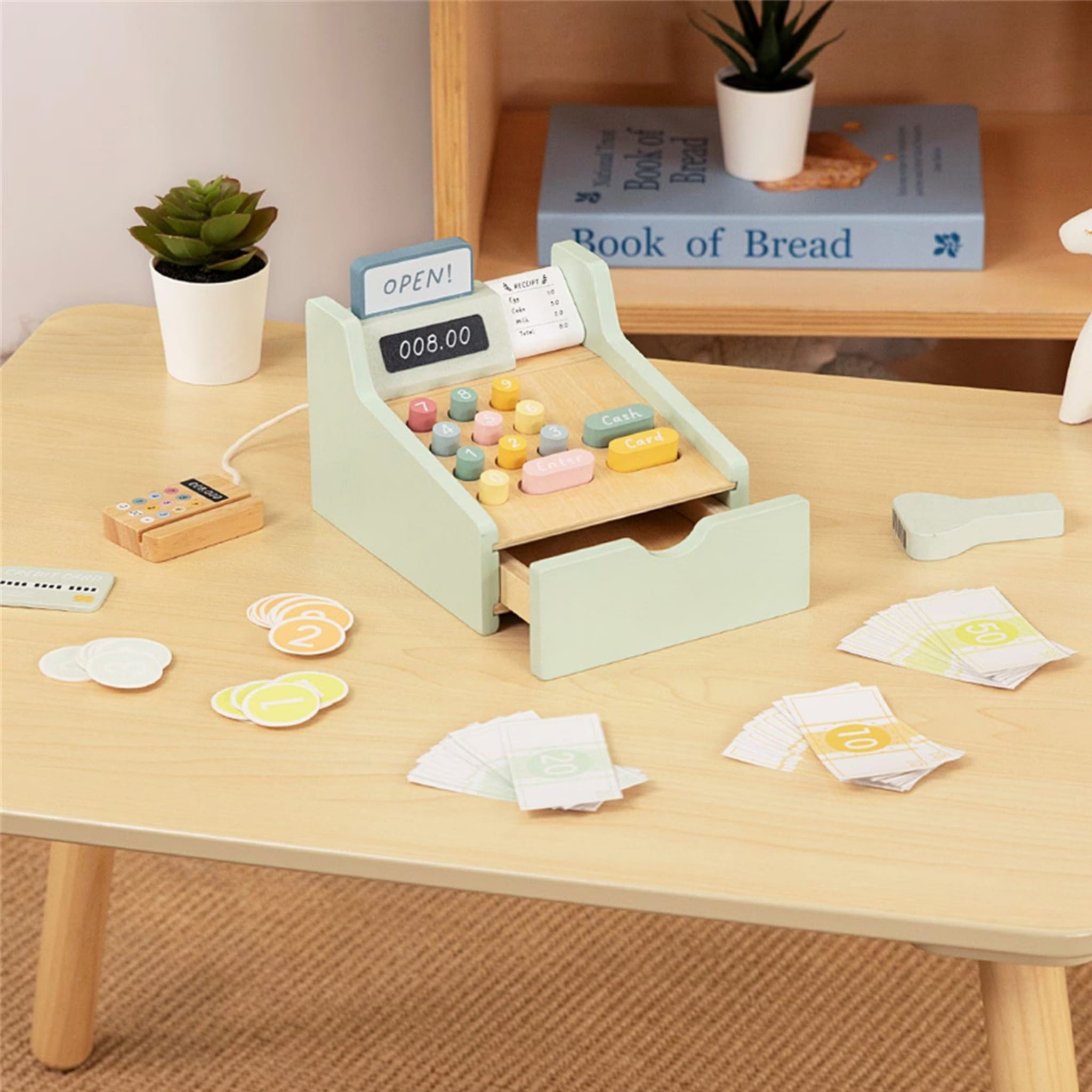 Drewniana kasa to idealny wybór na prezent edukacyjny, który łączy naukę liczenia, rozwój motoryki, kreatywność i zabawę w jednym eleganckim zestawie.