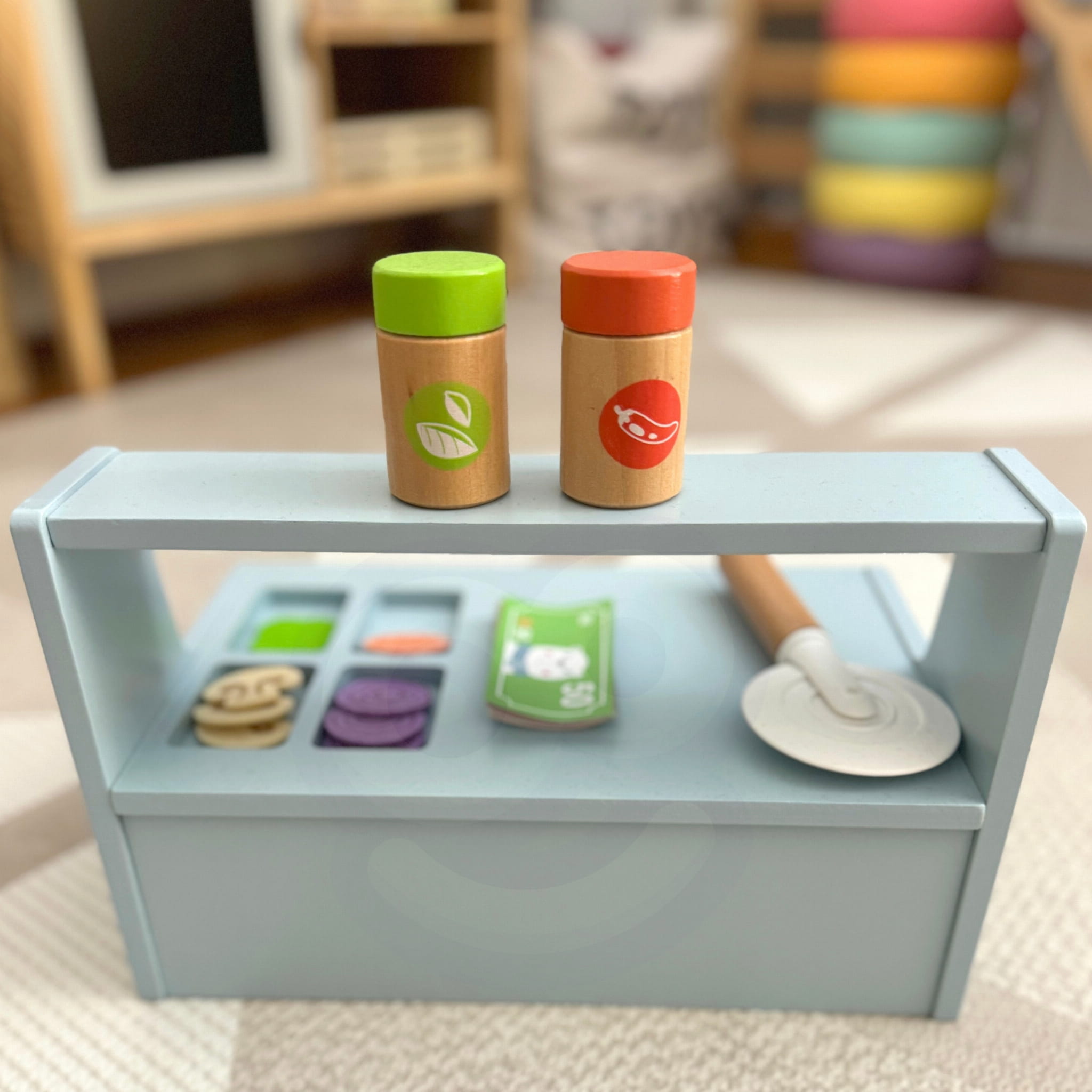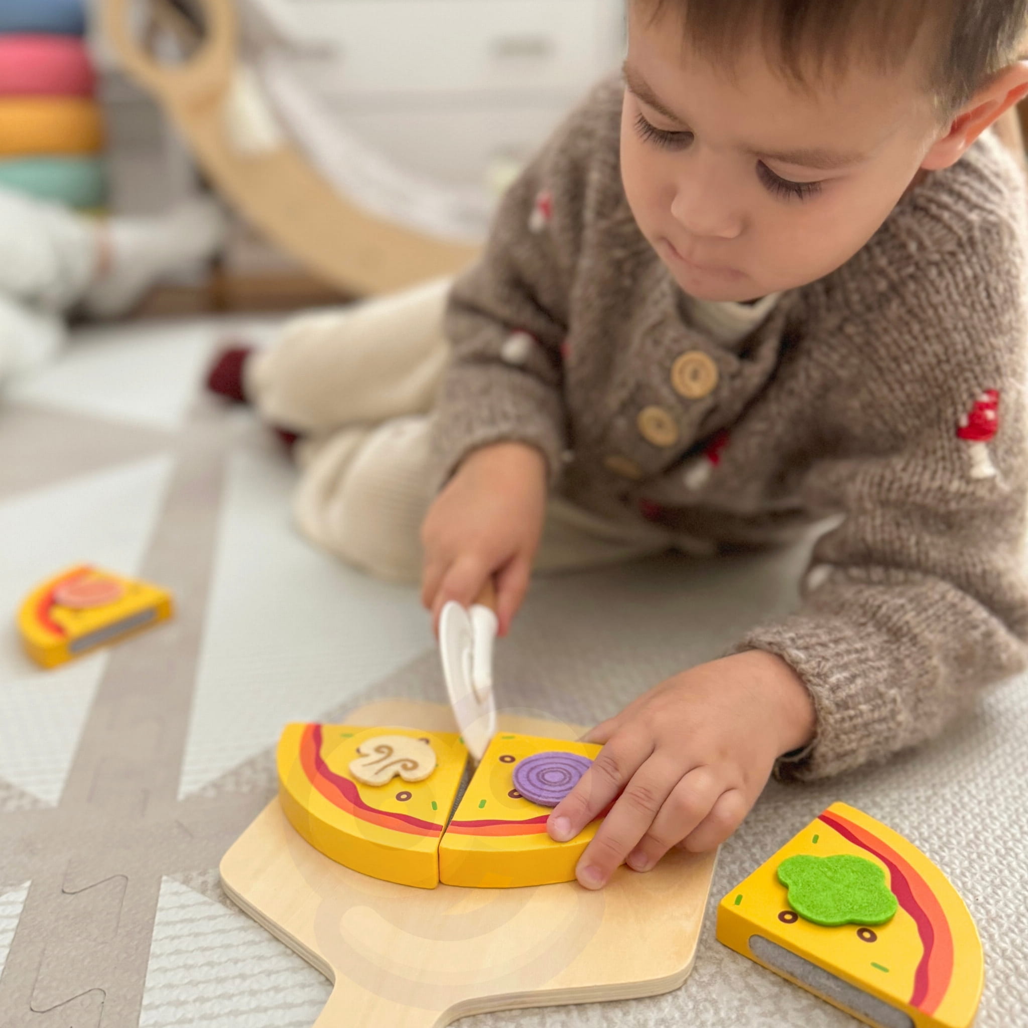 Zestaw został zaprojektowany tak, aby łączyć kreatywną zabawę z nauką i rozwijaniem umiejętności motorycznych. Realistyczne elementy, w tym piec do pizzy, kawałki pizzy, dodatki i przyprawy, zachęcają dziecko do samodzielnego komponowania pizzy, a interaktywna zabawa sprzyja współpracy i rozwija kompetencje społeczne. Wszystkie elementy są wykonane z bezpiecznego drewna i pomalowane nietoksycznymi farbami.