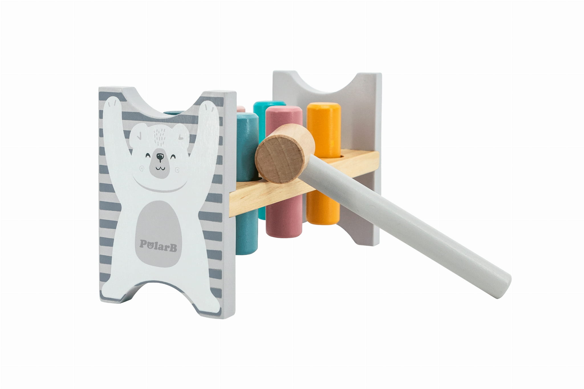 Ta drewniana zabawka rozwija motorykę małą, wzmacnia mięśnie dłoni oraz wspiera koordynację ręka–oko. Regularne wbijanie kołków pomaga ćwiczyć precyzję ruchów, która w przyszłości ułatwia naukę pisania. Pastelowe kolory wspierają rozpoznawanie barw, a powtarzalność czynności buduje koncentrację i cierpliwość. Naturalne drewno i bezpieczne wykończenie sprawiają, że zabawka doskonale sprawdzi się w domu, przedszkolu oraz gabinecie terapeutycznym.