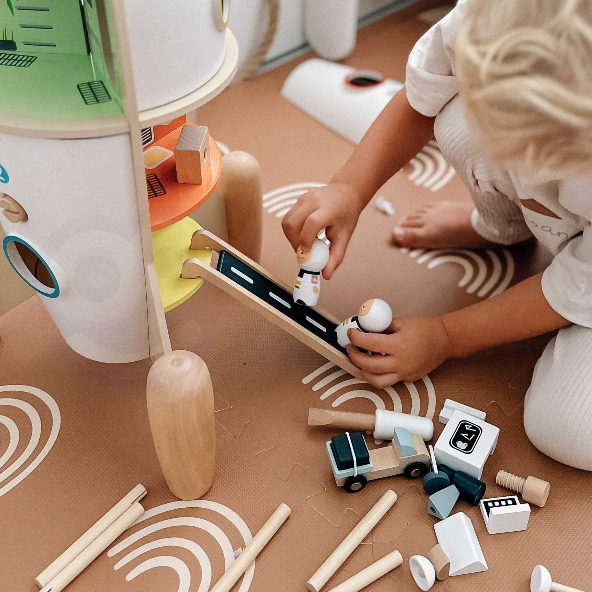 Drewniana Rakieta Domek dla Dzieci + Figurki Akc.