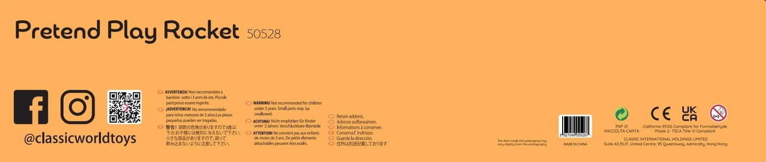 Odkryj wyjątkową, drewnianą rakietę CLASSIC WORLD – dużą, wielopoziomową konstrukcję, która służy zarówno jako statek kosmiczny, jak i domek dla astronautów. Dzięki szczegółowo urządzonym poziomom i otwartej formie, zabawa w odgrywanie ról nigdy się nie kończy. Zestaw pobudza wyobraźnię i zachęca do międzygwiezdnych misji!Rakieta CLASSIC WORLD została wykonana z wysokiej jakości, naturalnego drewna, a wszystkie elementy pomalowano nietoksycznymi, bezpiecznymi farbami. To gwarancja wielu godzin bezpiecznej zabawy dla Twojego dziecka.