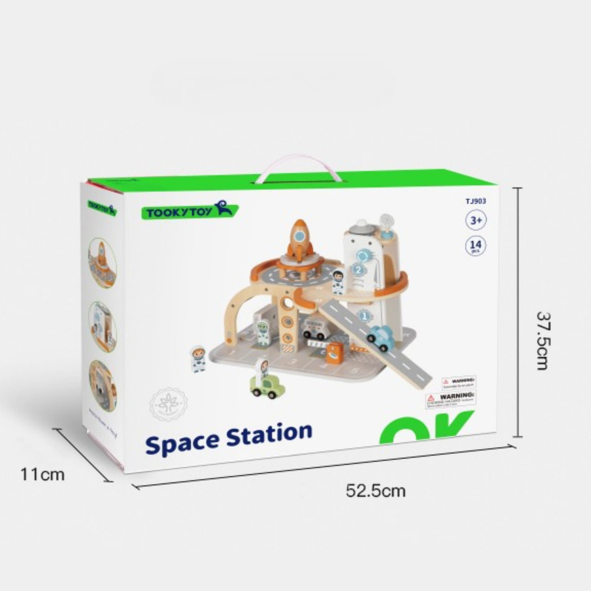 Drewniana Stacja Kosmiczna z Rakietą i Pojazdami TOOKY TOY – 3 Poziomy, 17 Elementów