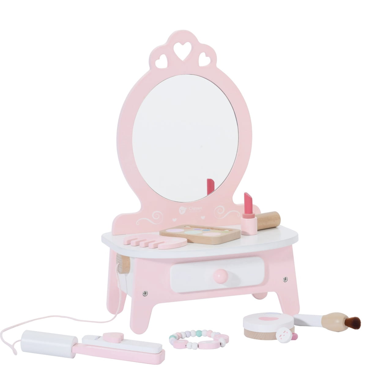 Drewniana Toaletka dla Dziewczynki z Lustrem i Prostownicą 11 akcesoriów – Classic World