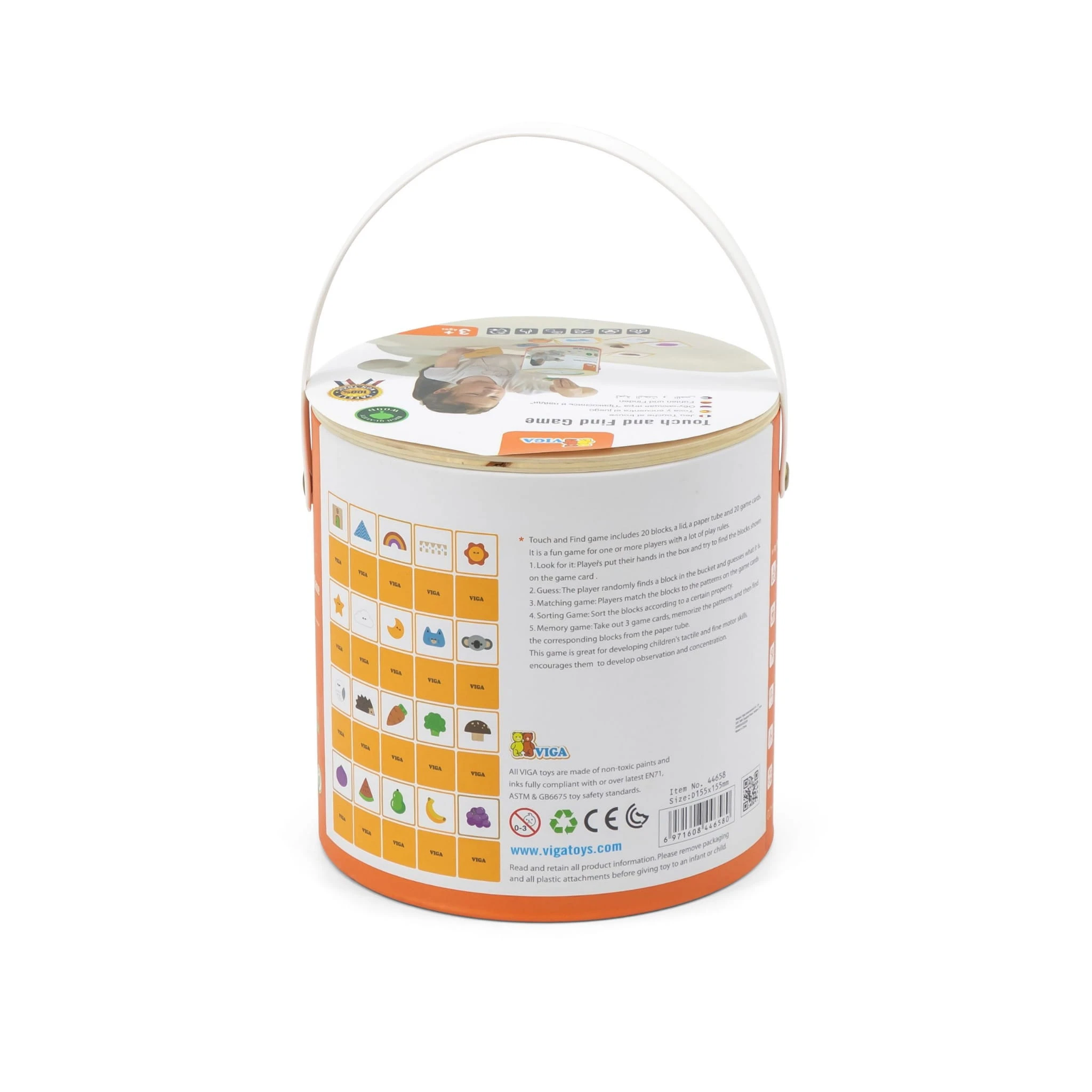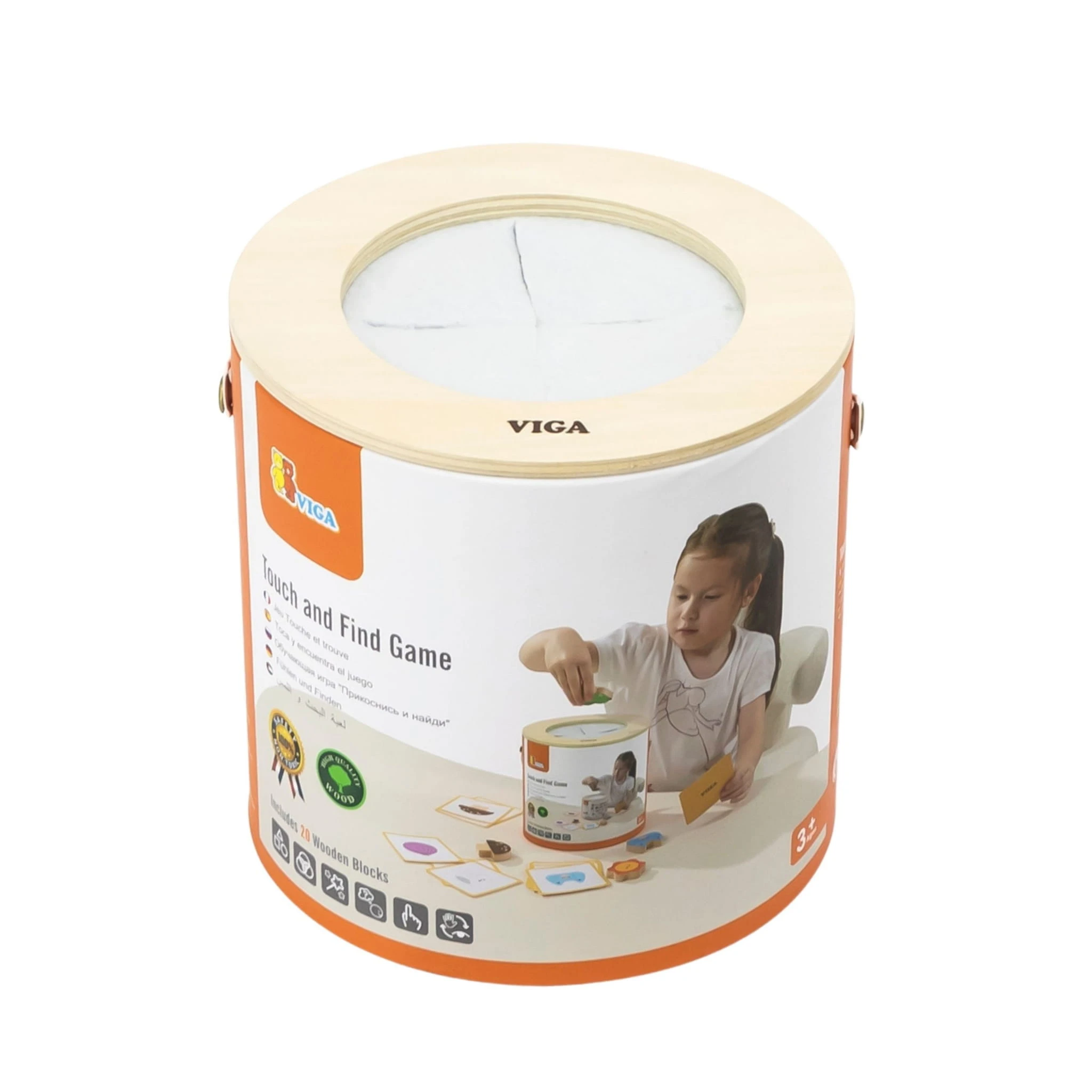 Drewniana gra sensoryczna „Gra w ciemno” losowanie wzorów dotykowa Montessori VIGA 3+