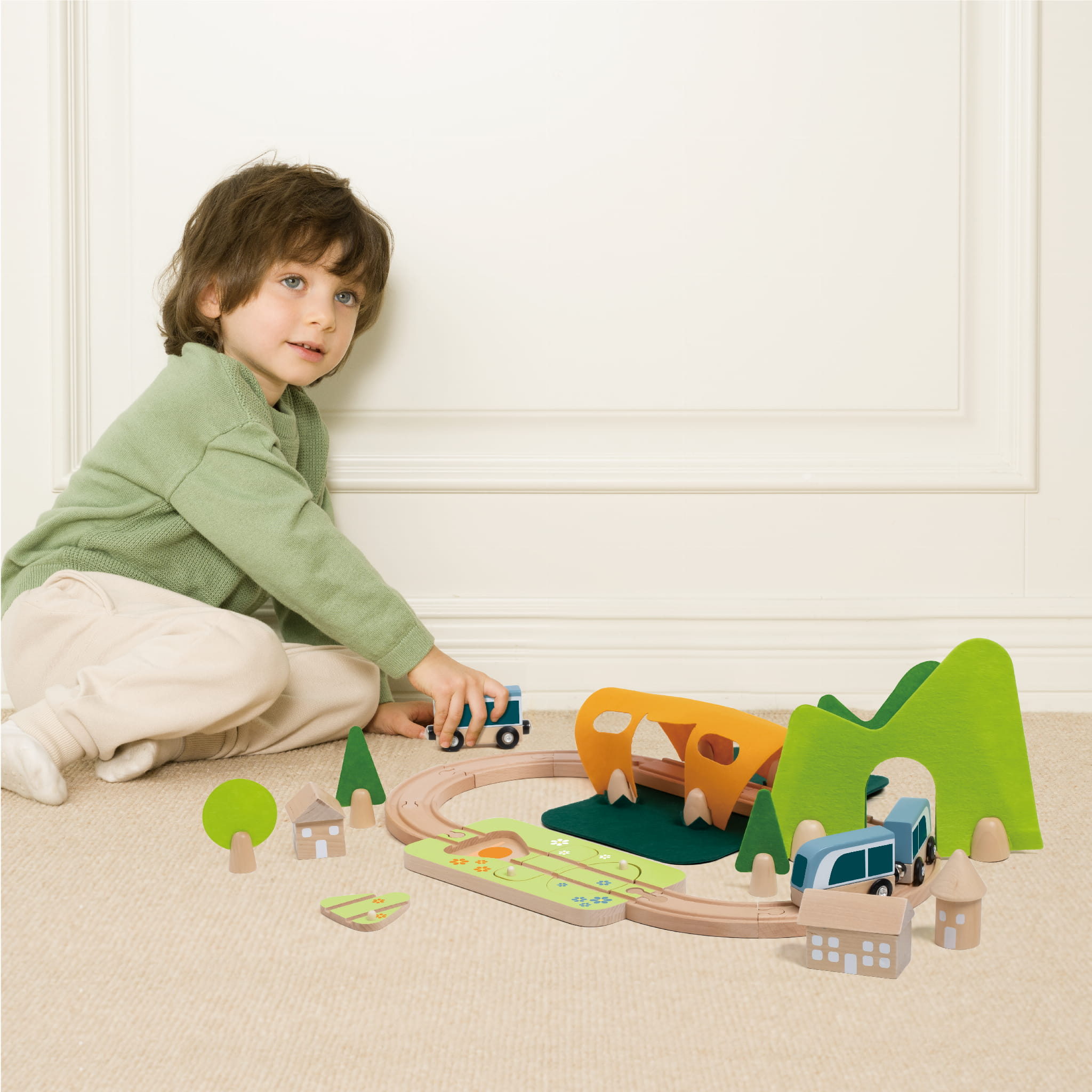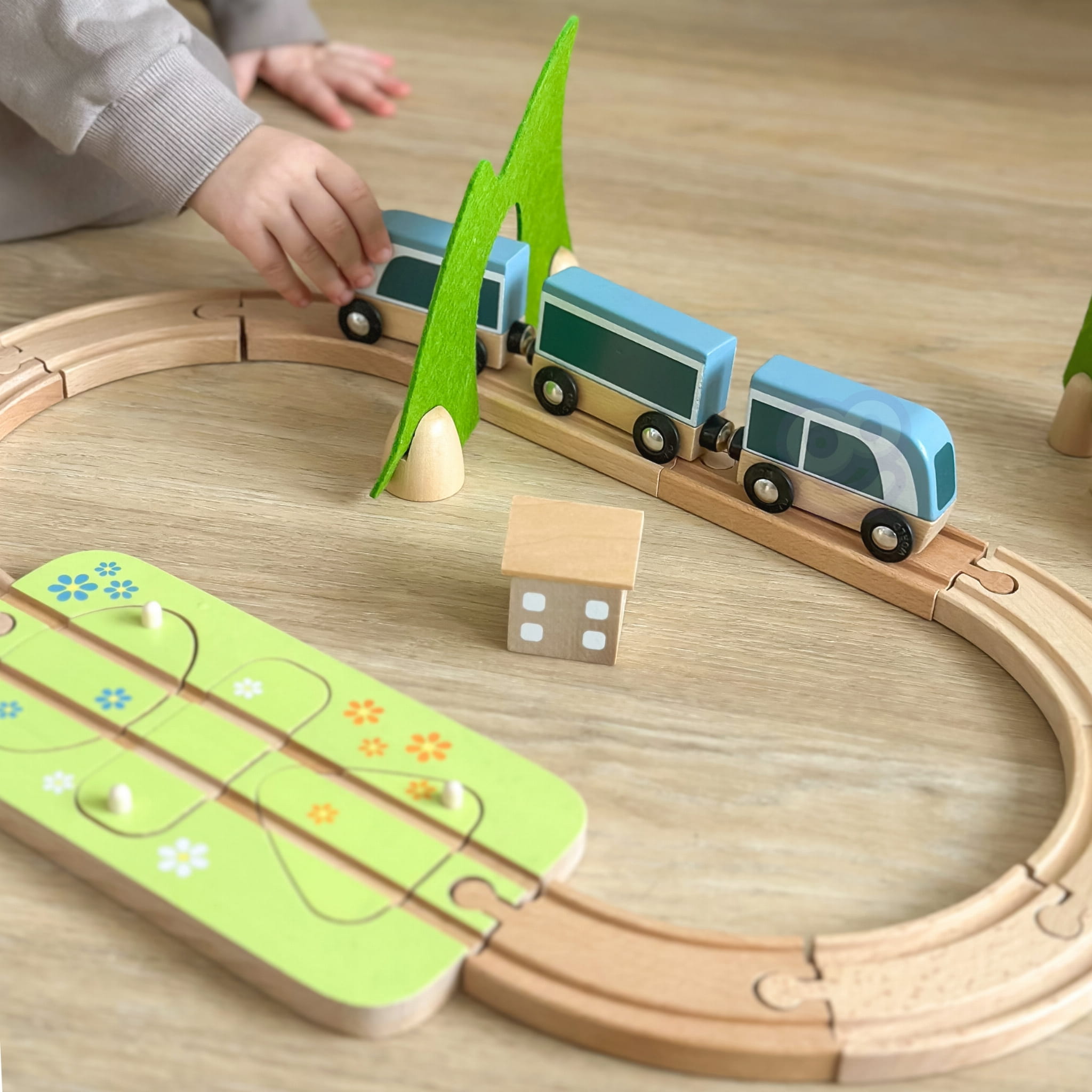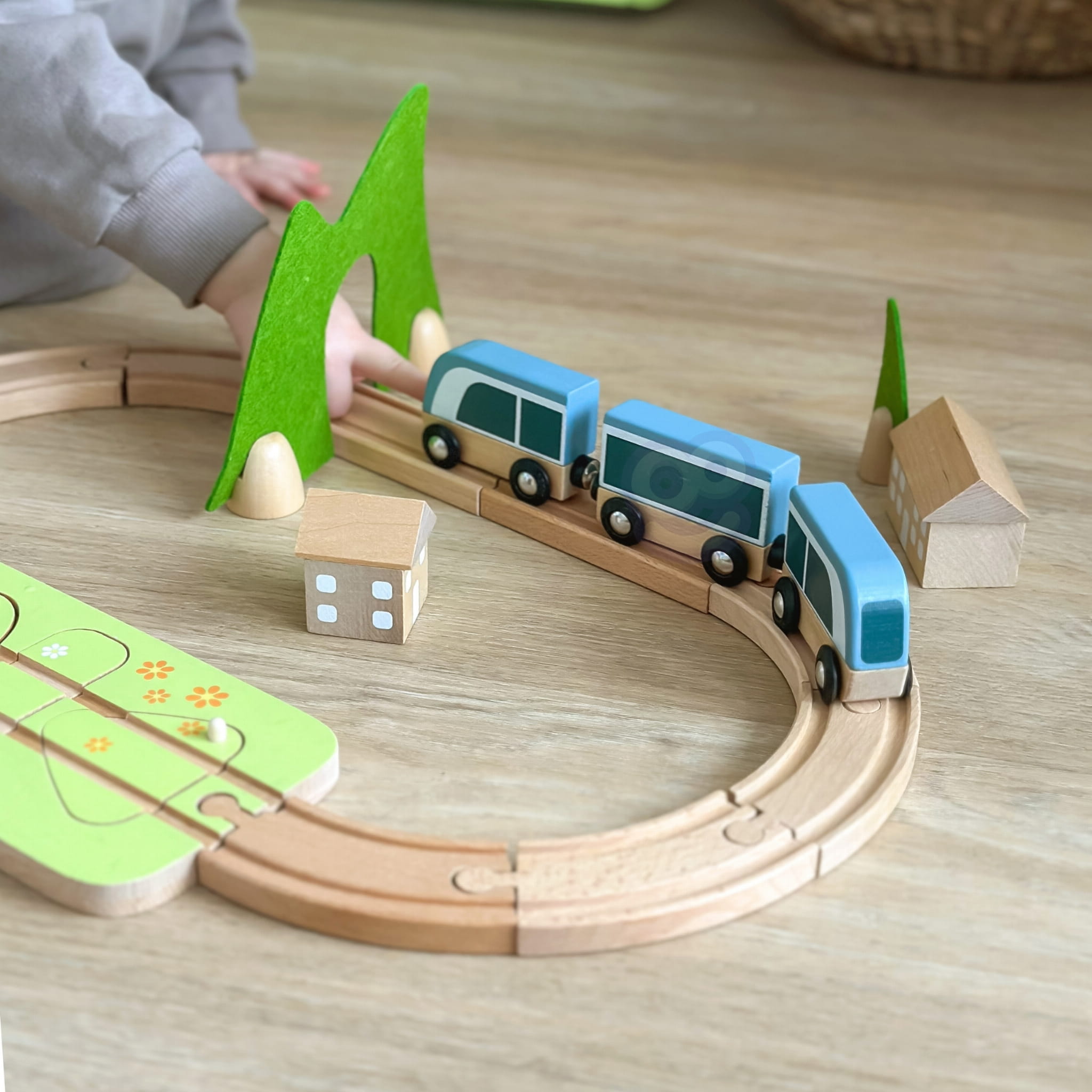 Dziecko może samodzielnie układać tor, ustawiać tunel i stację oraz dopasowywać klocki do odpowiednich otworów. Sorter kształtów uczy logicznego myślenia, a budowanie trasy rozwija planowanie i cierpliwość. To zabawka, która naturalnie wydłuża koncentrację i wciąga na dłużej niż kilka minut.