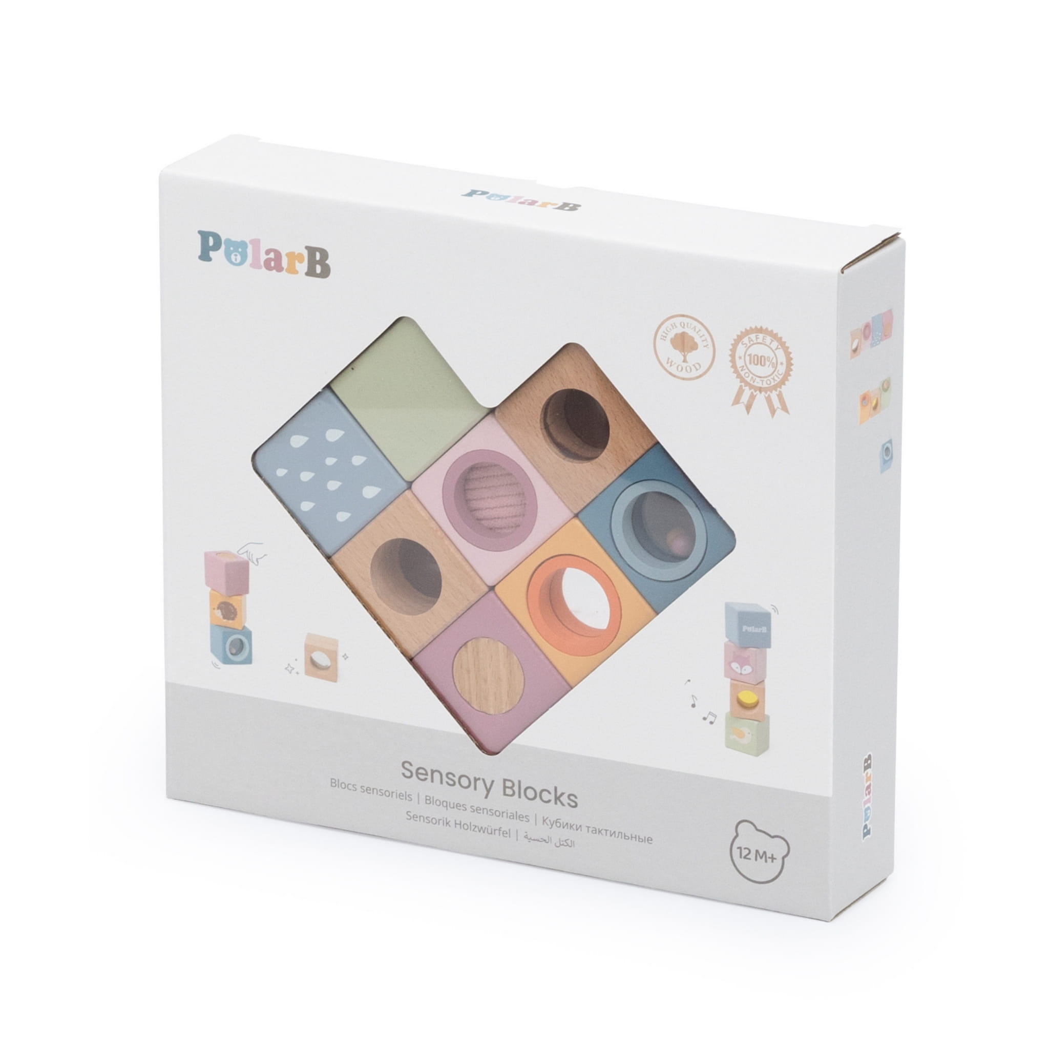 Odkryj sensoryczną zabawę z drewnianymi klockami PolarB! Idealne dla maluchów od 12 miesiąca życia, wspierają rozwój zmysłów, kreatywność i małą motorykę.