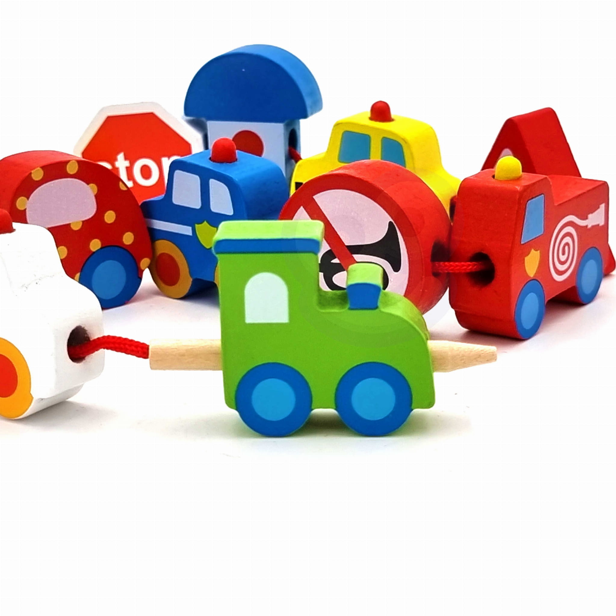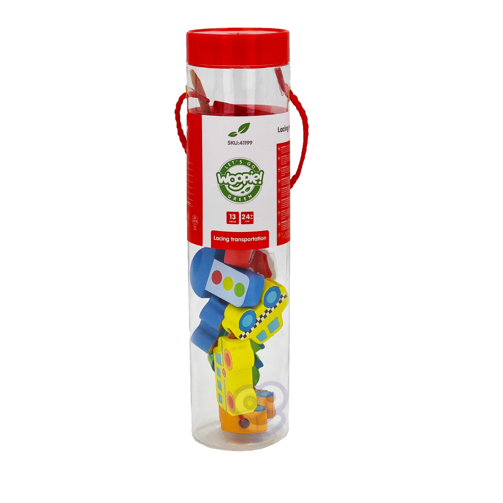 Drewniane Klocki do Nawlekania Pojazdy Samochody 13 el. WOOPIE GREEN