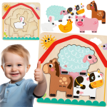 Drewniane Puzzle Montessori Wielowarstwowe Tablica Zwierzątka na Farmie 7 el. TOOKY TOY