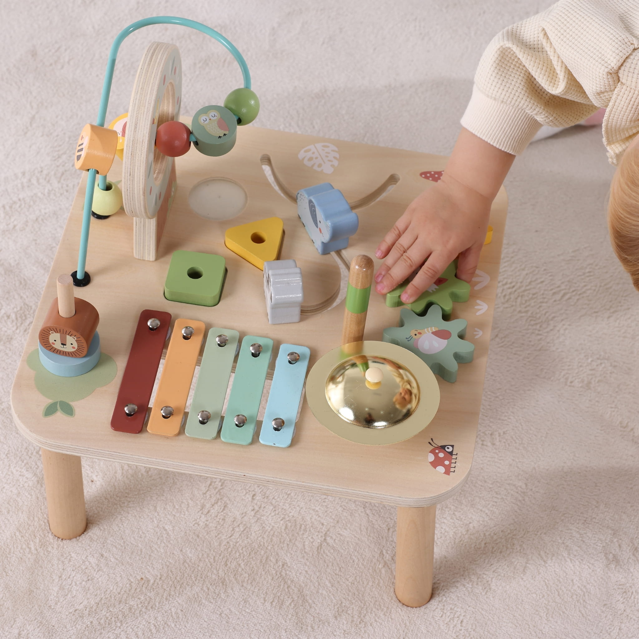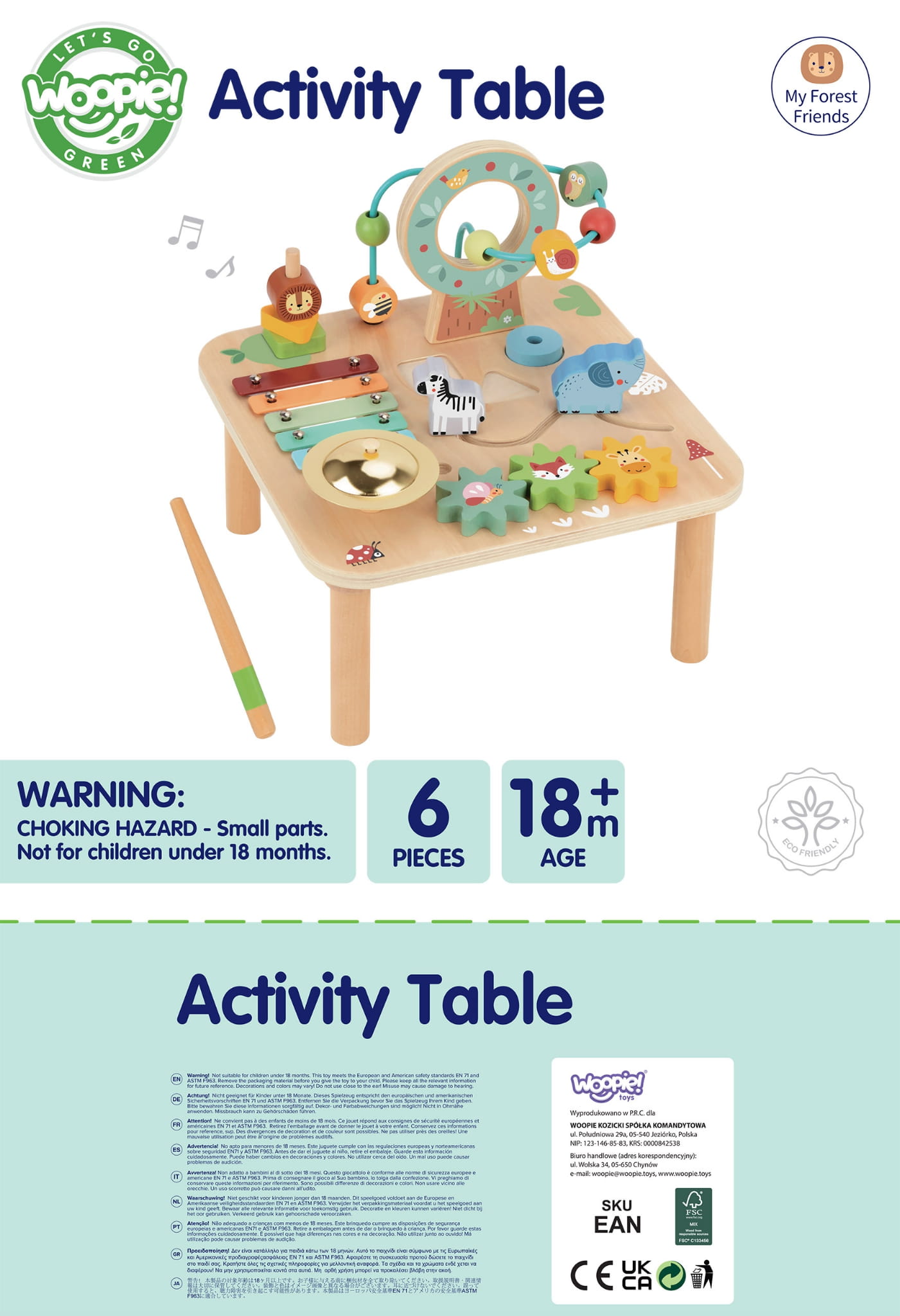 Drewniany Stolik Edukacyjny Muzyczny Labirynt Sensoryczny 5W1 WOOPIE GREEN