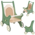 Ten uroczy wózek dla lalek to połączenie klasycznego stylu z naturalnymi materiałami. Zielona konstrukcja z kwiatowymi zdobieniami i rattanowym oparciem przyciąga uwagę i tworzy niepowtarzalny klimat retro. To idealna zabawka dla dzieci, które lubią odgrywać role i opiekować się swoimi lalkami i pluszakami.