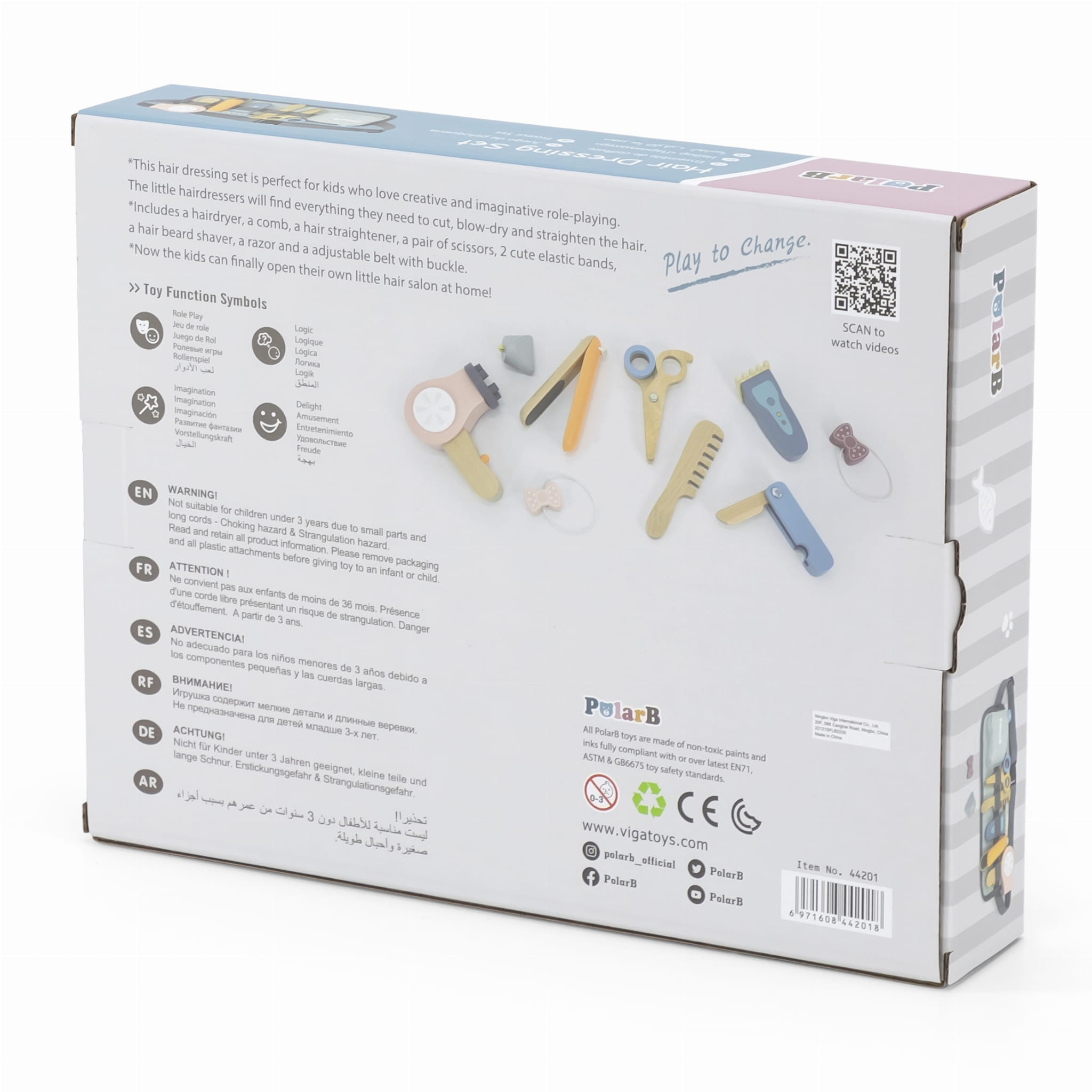 Drewniany Zestaw Fryzjerski dla Dzieci z Pasem i Narzędziami – VIGA PolarB