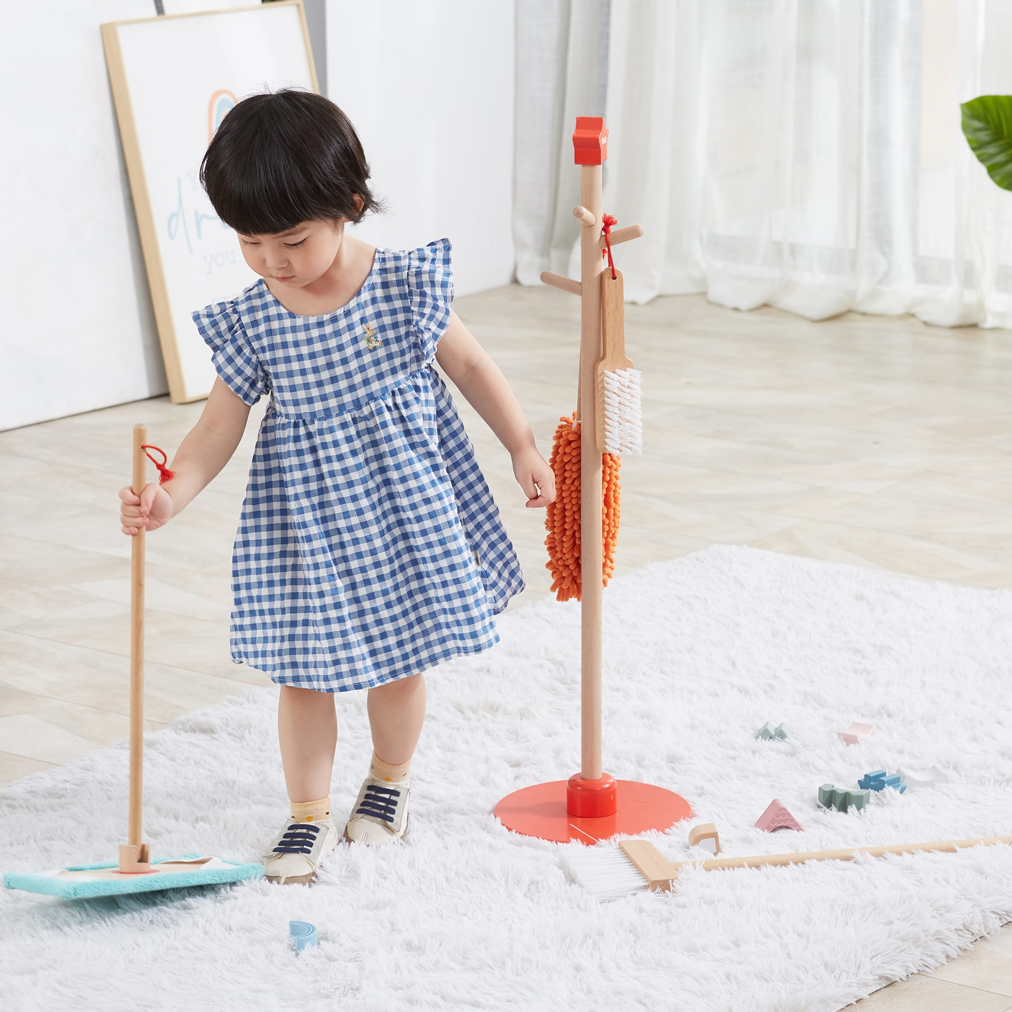 Zestaw drewnianych narzędzi do sprzątania dla dzieci od 3 lat – nauka porządku, motoryki i zabawy w rolę małego pomocnika w domu.