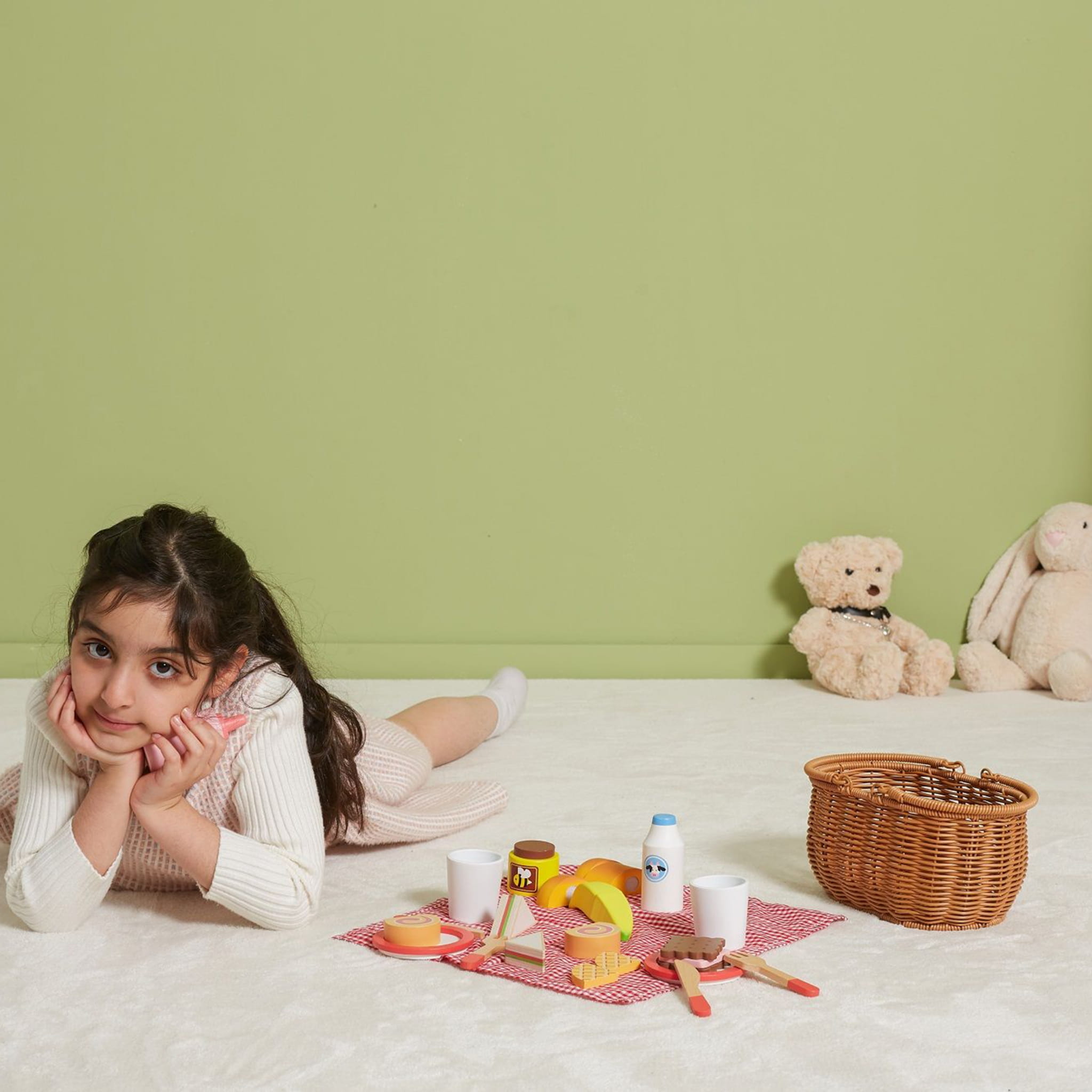 Zabawa piknikowa pobudza wyobraźnię, uczy dzielenia się i zachęca do kreatywności. To świetna okazja, by maluch rozwijał umiejętności społeczne i poznawcze, a przy okazji poznawał kształty i kolory.