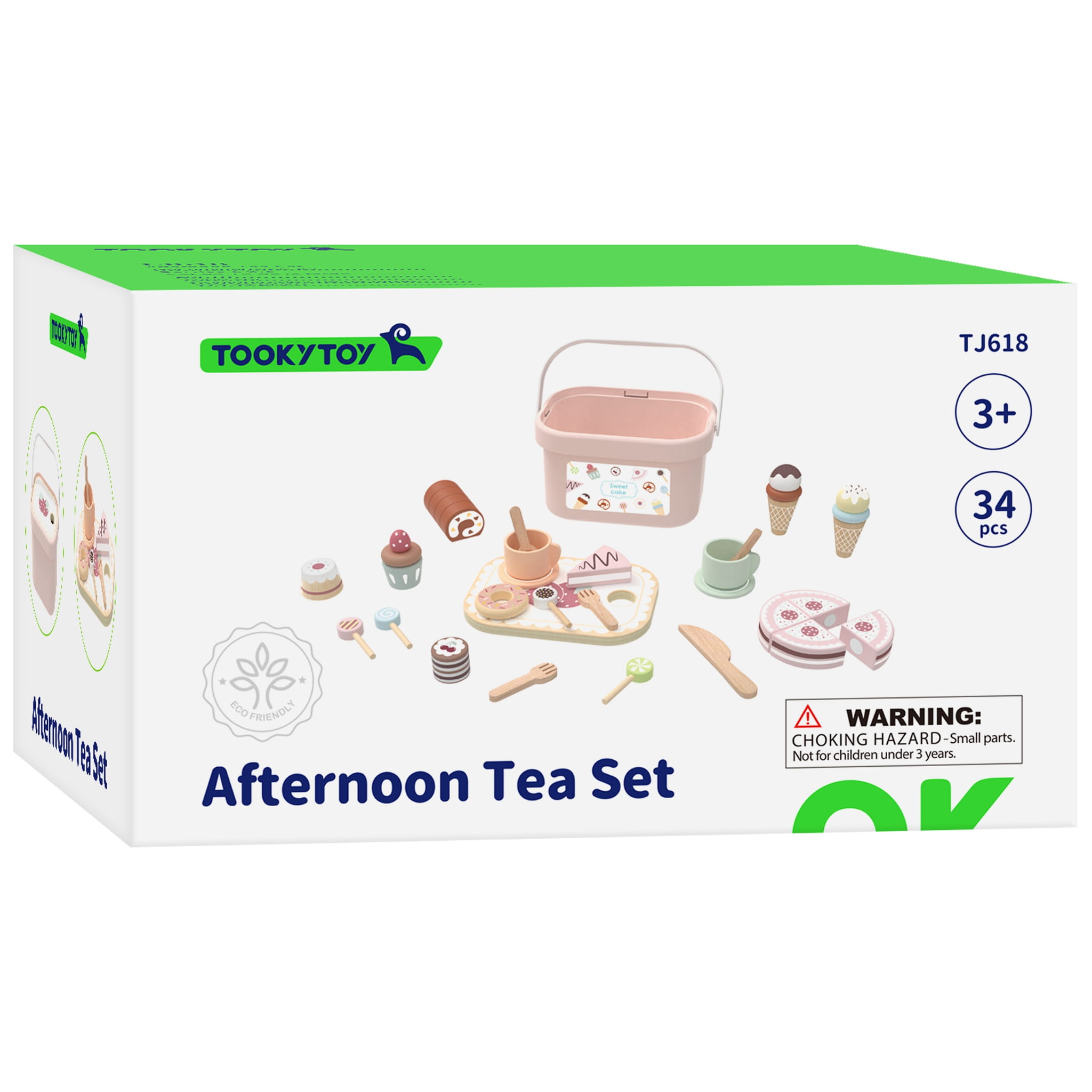 Sweet Cake to drewniany zestaw słodkości od Tooky Toy, doskonały do kreatywnej zabawy podczas przyjęć. Zawartość tego plastikowego pudełka obejmuje piękny tort i roladę, które można kroić, dwie urocze filiżanki na herbatę, ciastka, pączki, lody, lizaki oraz elegancka tacę do podawania tych pyszności. To kompleksowe wyposażenia pozwala na zorganizowanie uroczystego przyjęcia urodzinowego lub innego wyjątkowego spotkania z przyjaciółmi. Zabawa ze Sweet Cake nie tylko rozwija wyobraźnię dziecka, ale także wspiera rozwój umiejętności manualnych. Używając tego zestawu, maluchy mogą wcielać się w rolę małych cukierników cieszyć się tworzeniem niezapomnianych chwil podczas wspólnych spotkań.