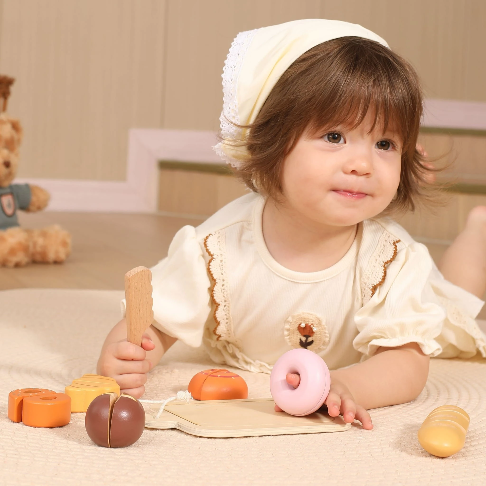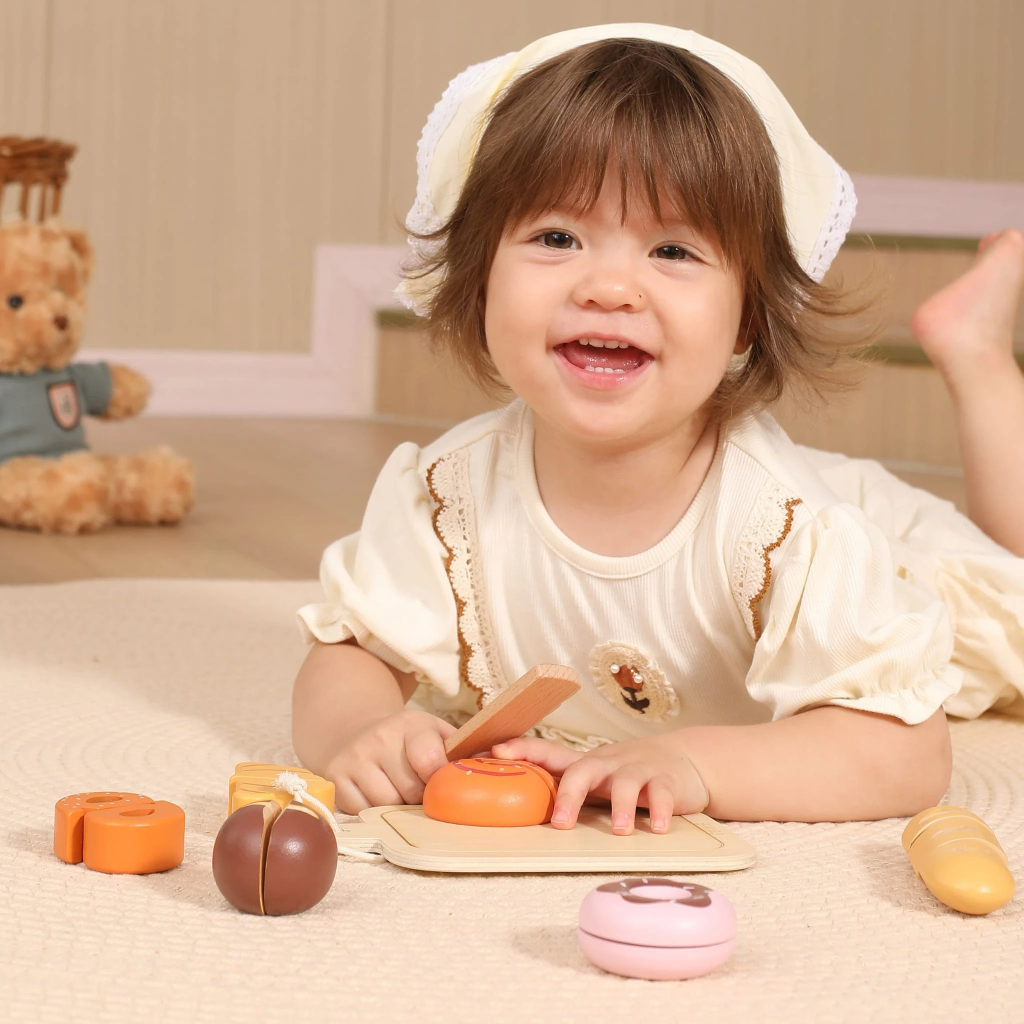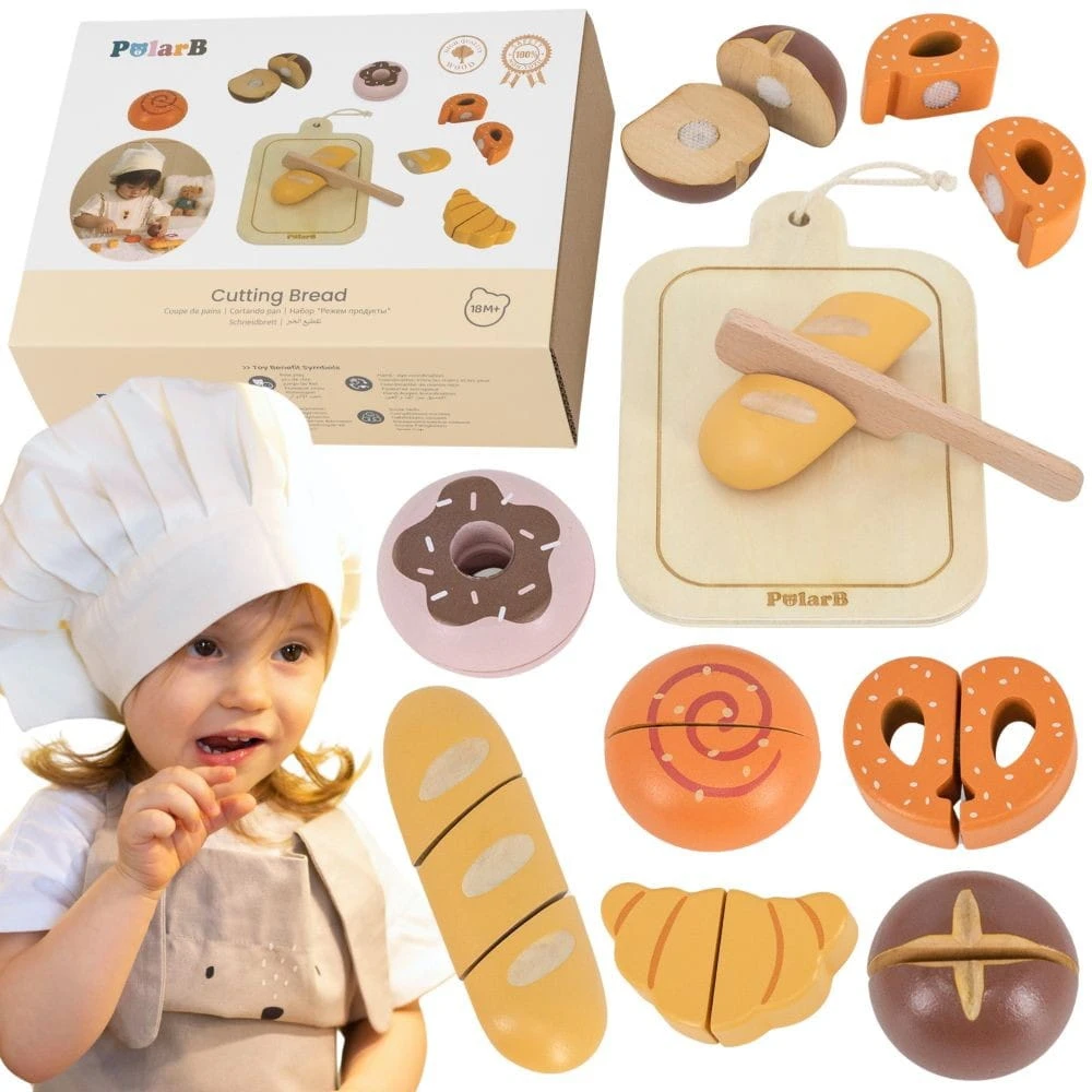 Poczuj klimat domowej piekarni i wspólnych poranków! Drewniany zestaw śniadaniowy dla dzieci to realistyczna zabawka do krojenia pieczywa, która rozwija motorykę, wyobraźnię i zachęca do kreatywnej zabawy w odgrywanie ról.