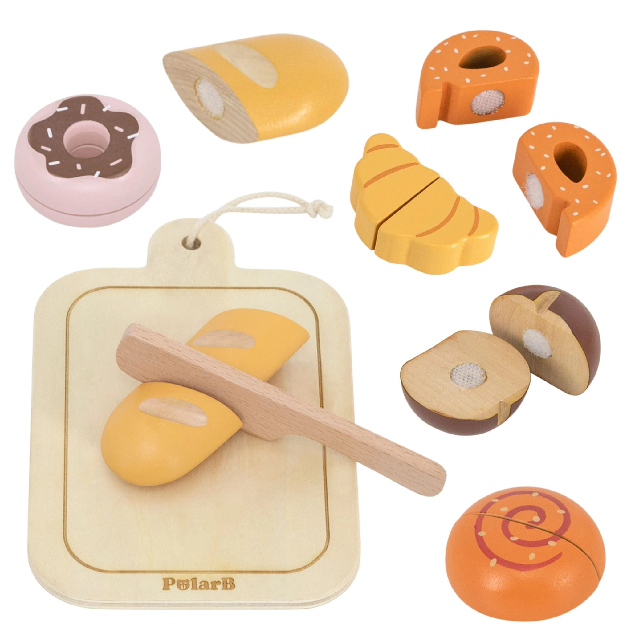 - elementy pieczywa (precel, croissant, bułka, bułka cynamonowa, donut, bagietka) łączone na rzepy
