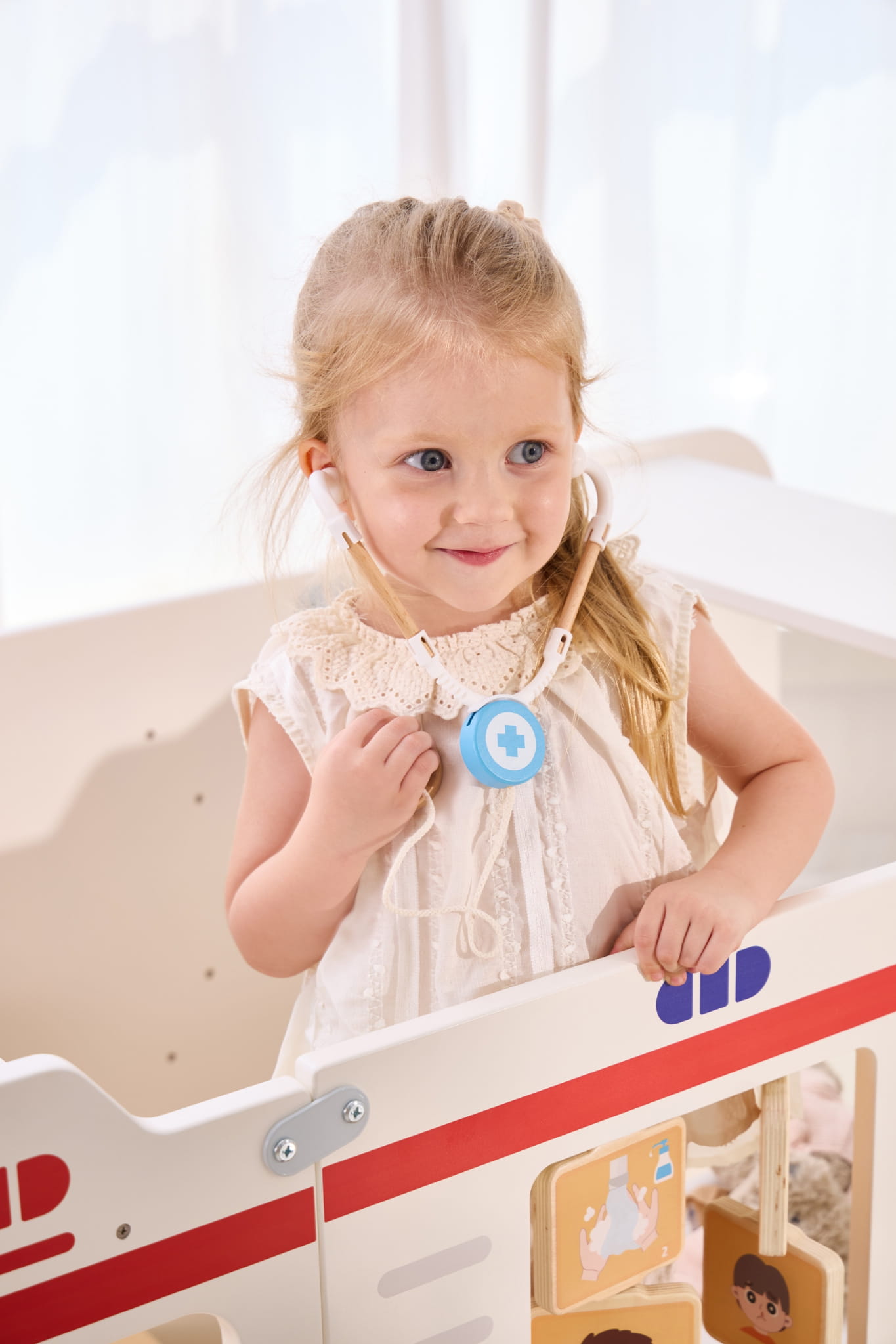 Drewniana konstrukcja wykonana z bezpiecznych materiałów sprawia, że produkt idealnie nadaje się do przedszkoli, sal zabaw oraz kącików tematycznych. Zabawa w ratowników medycznych rozwija również wyobraźnię, komunikację oraz zdolność pracy zespołowej.