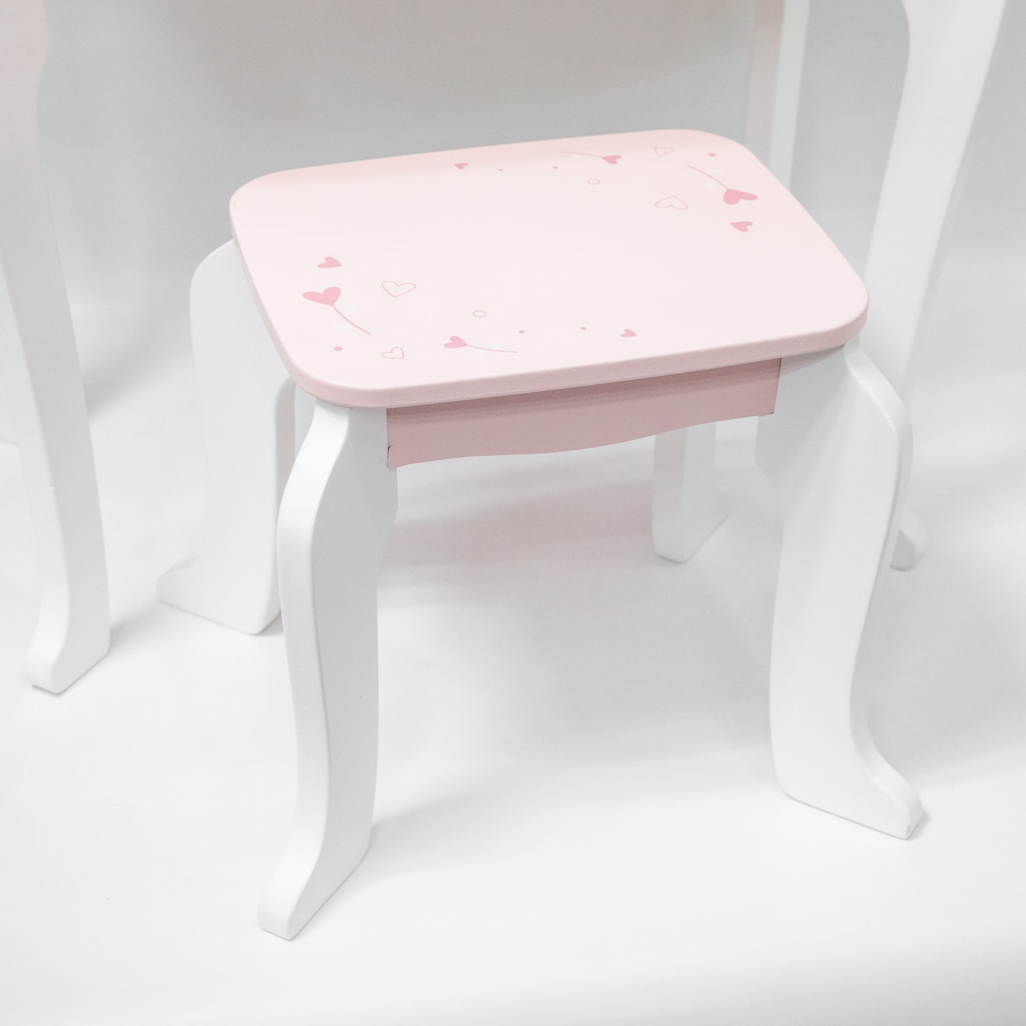 Duża Toaletka Drewniana Biało-Różowa z Lustrem i Krzesełkiem VIGA