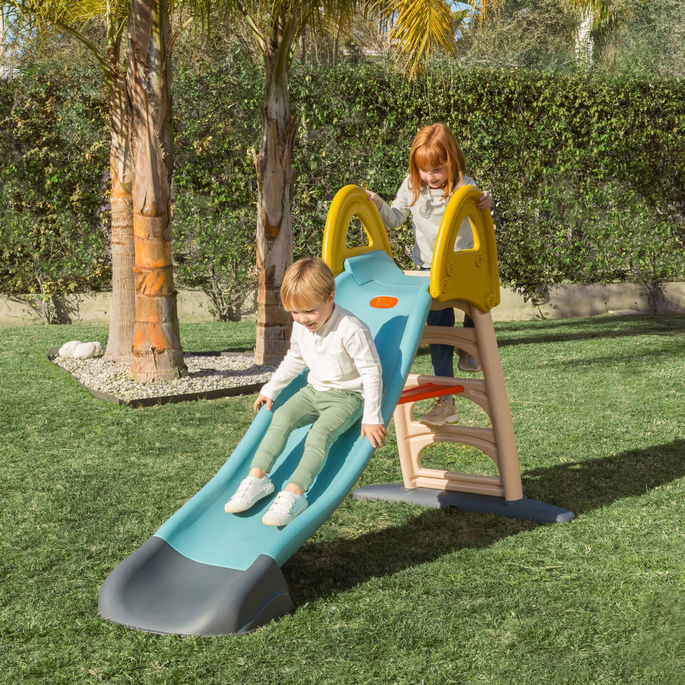Zjeżdżalnia Casual hiszpańskiej marki Feber dla dzieci od 3 roku życia życia. Ślizg długości 190 cm, wygodna drabinka z uchwytami do wejścia dla dziecka zapewni bezpieczeństwo. Możliwość podłączenia węża ogrodowego do ślizgu i już mamy wodny plac zabaw idealny w upalne dni. Produkt wykonany z wytrzymałego i odpornego plastiku pokrytego powłoką ANTI-UV, która chroni przed blaknięciem.