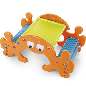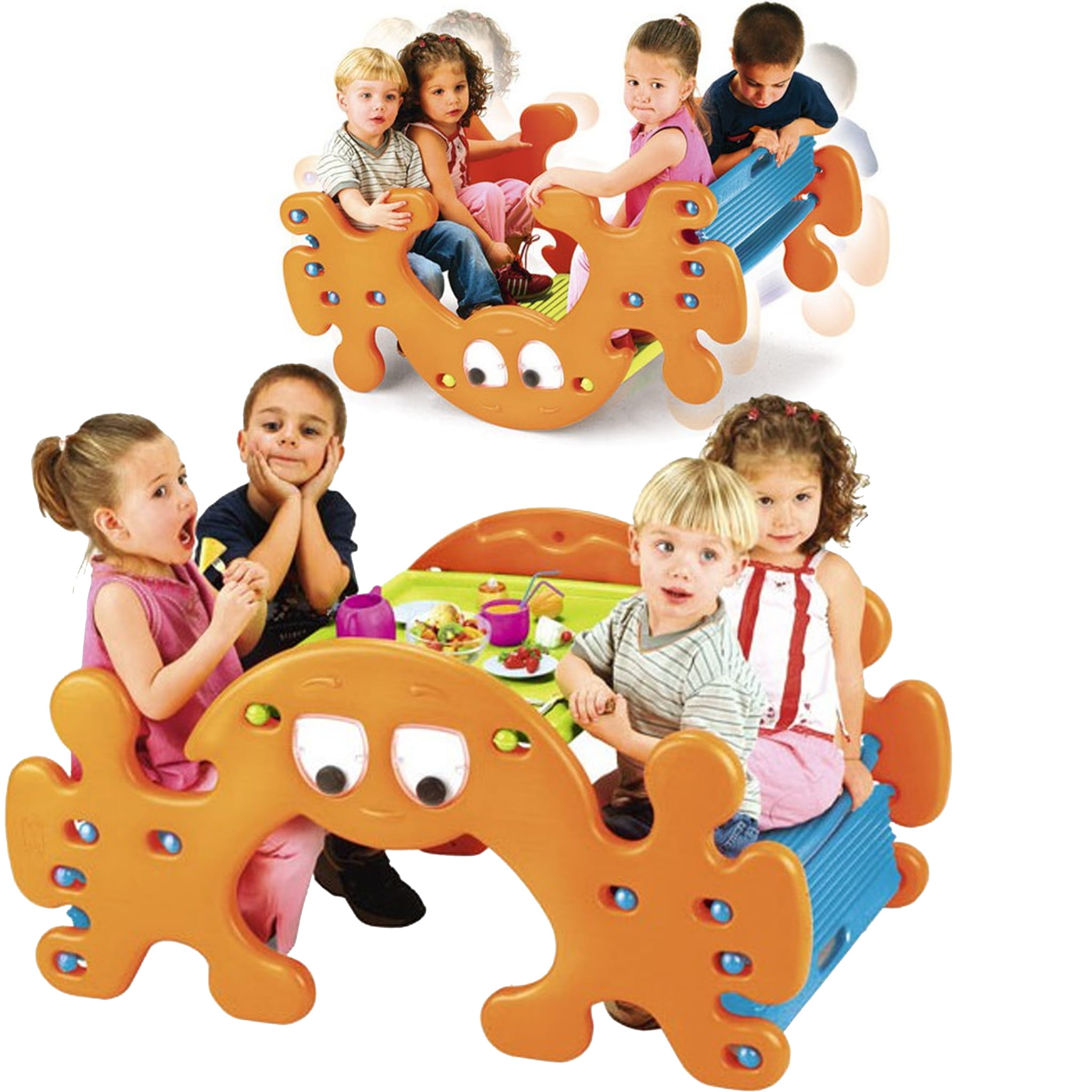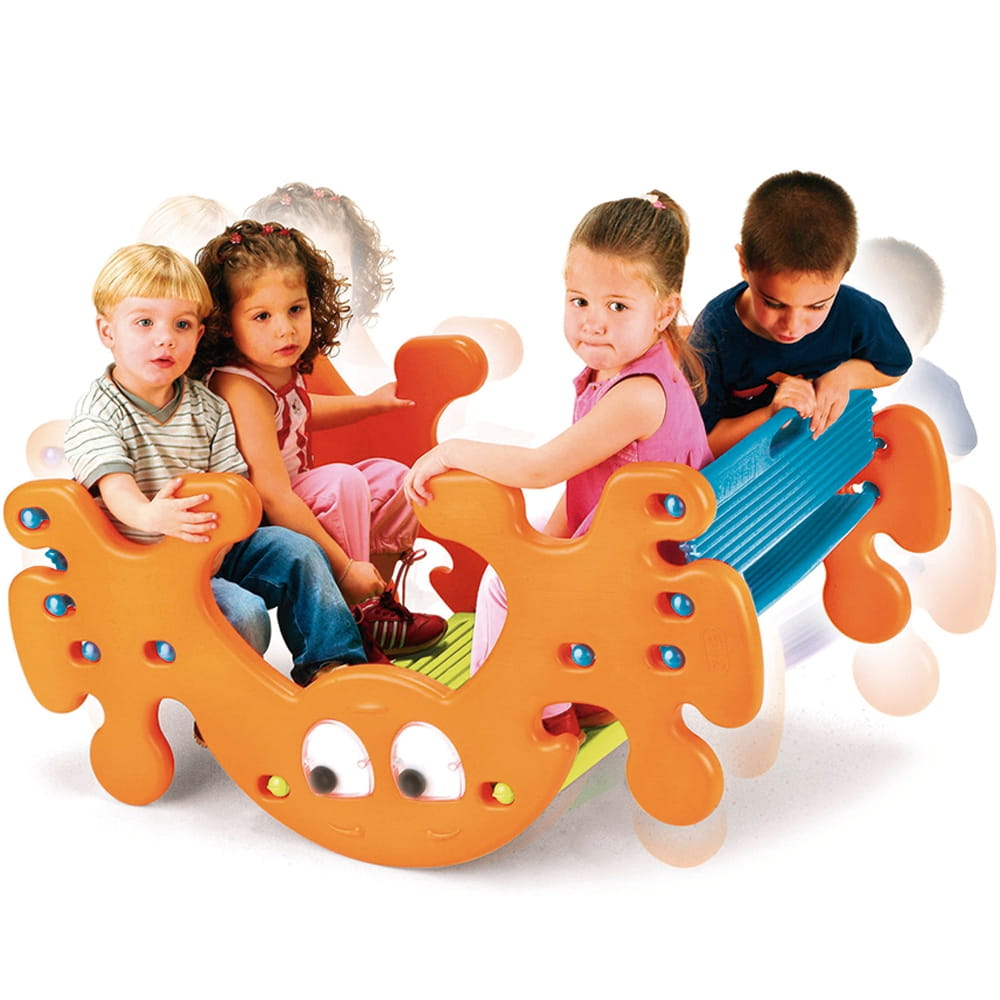 Stolik - bujak firmy Feber z oczami, które poruszają się podczas bujania to doskonałe uzupełnienie przydomowego placu zabaw. Stolik po odwróceniu przekształca się w huśtawkę - bujak. Zabawka wyposażona została w 4 wygodne miejsca do siedzenia. Całość wykonana jest z wysokiej jakości tworzywa odpornego na działanie warunków atmosferycznych i promieni UV. Sposób wykonania sprawia, że przyciąga wzrok każdego malucha. Radość dziecka gwarantowana!