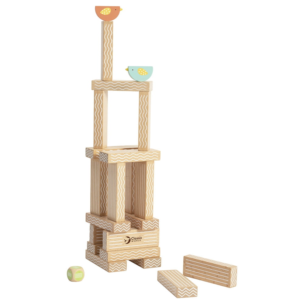 Drewniana gra edukacyjna Układanie Klocków Ptaków marki Classic World to wspaniała propozycja dla dzieci, które uwielbiają zabawy pełne emocji i nauki. Zestaw składa się z 20 klocków, 2 ptaków i kostki, dzięki czemu maluchy mogą układać konstrukcje, rywalizować i tworzyć własne zasady zabawy.