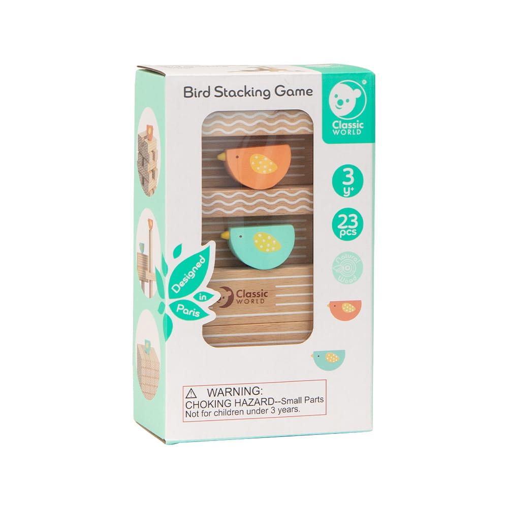 Drewniana gra edukacyjna z ptakami i klockami. Wspiera rozwój komunikacji, pewności siebie i logicznego myślenia dziecka.