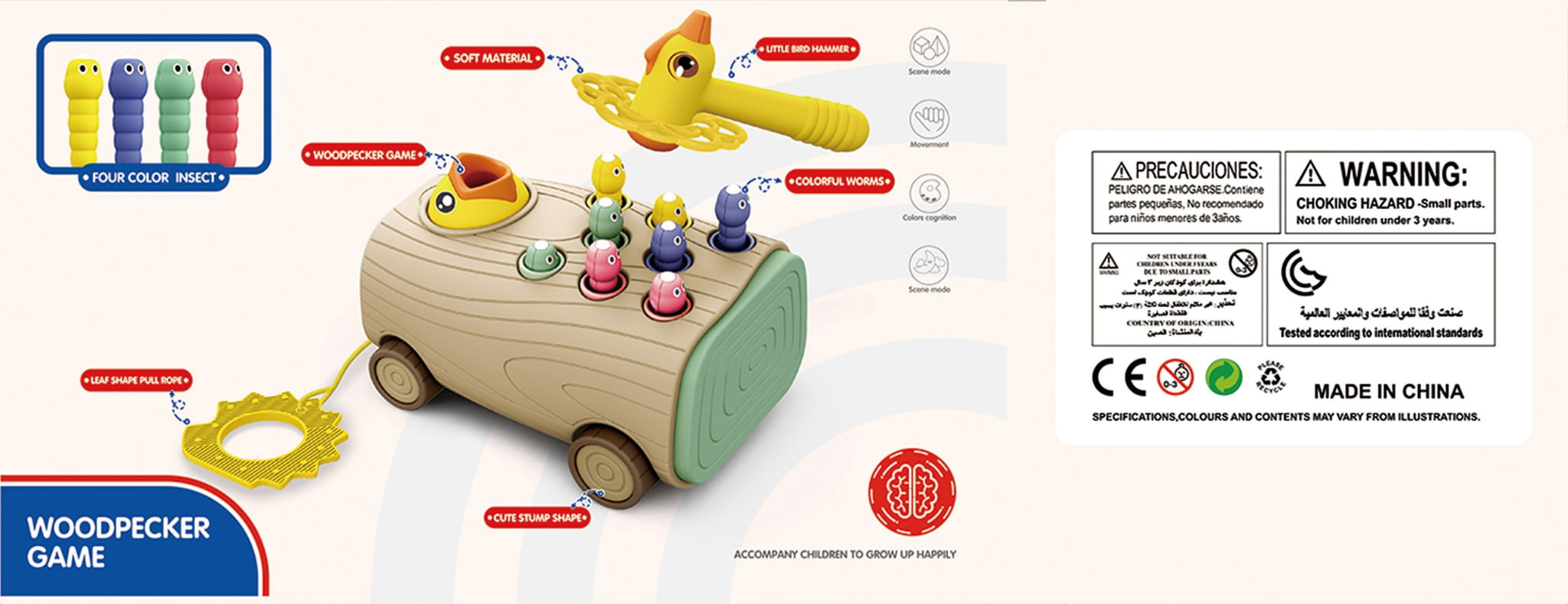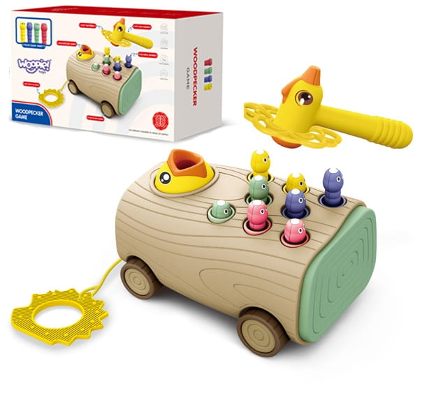 Gra Zręcznościowa Dzięcioł Wbijak Robaków 3w1 Wózek Ciągacz dla Niemowląt WOOPIE