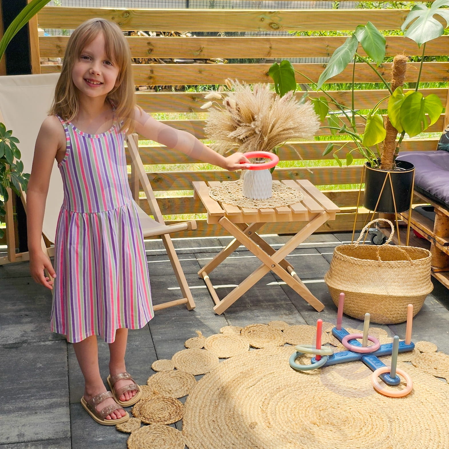 - - Zawartość Zestawu: 5 kółek do rzucania, 5 palików o różnych kolorachZ