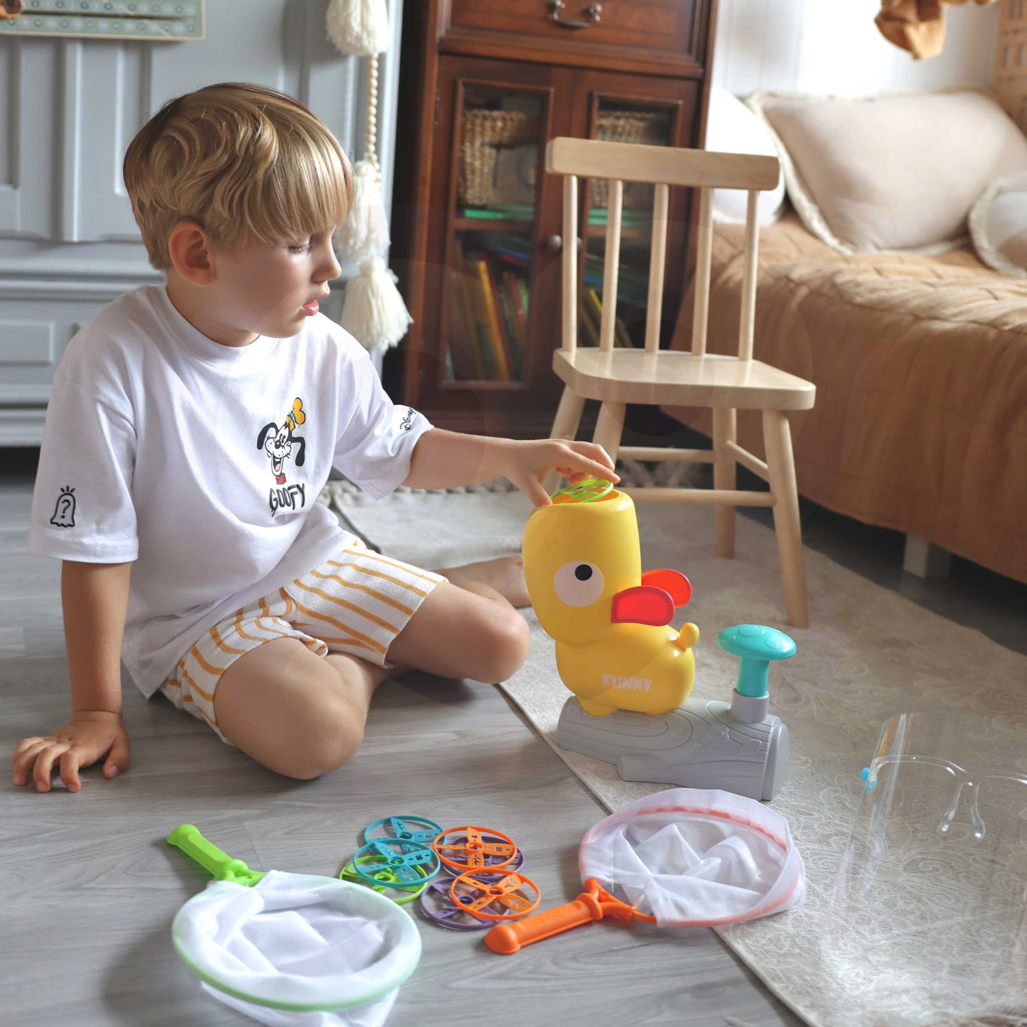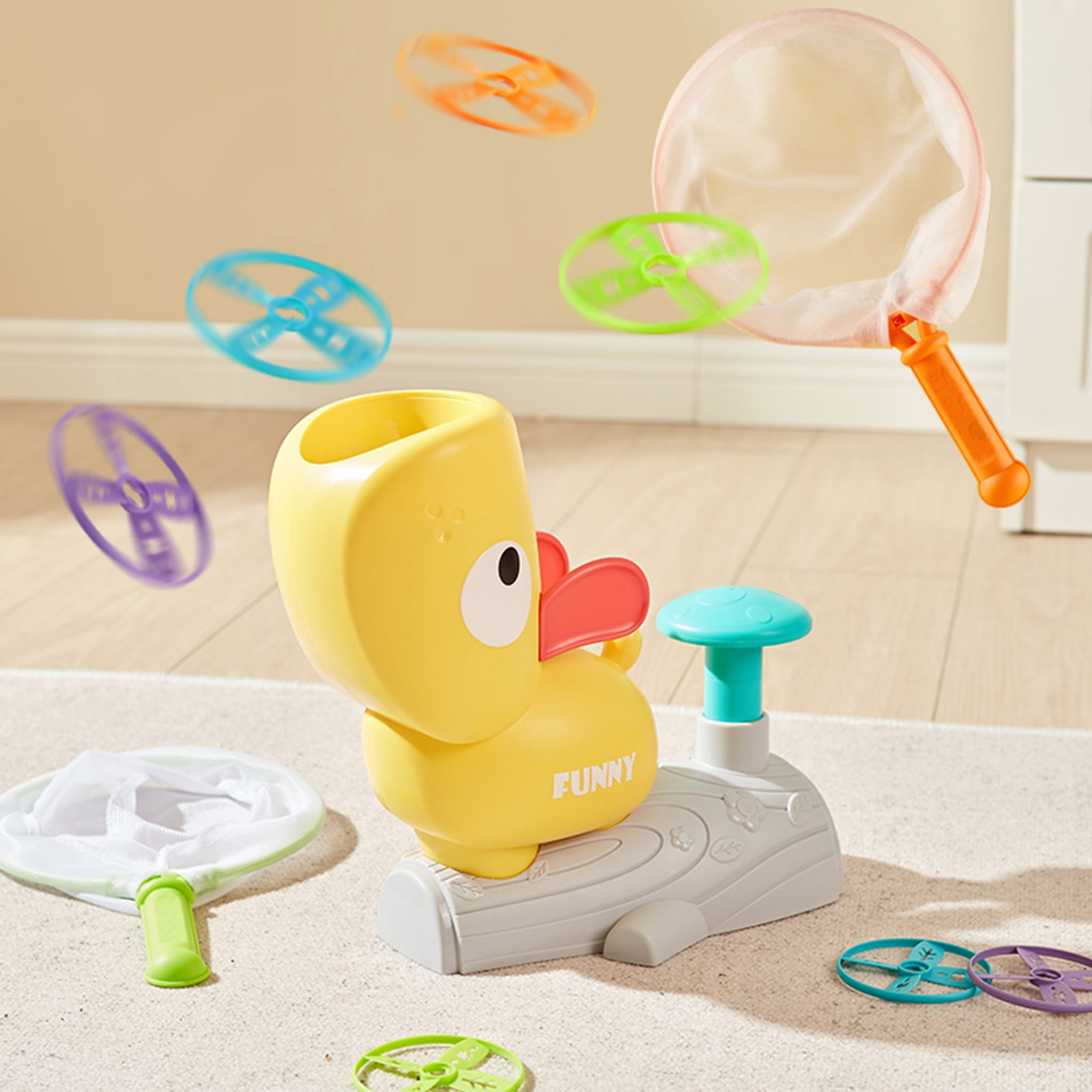 Gra Zręcznościowa Złap Frisbee Kaczka Katapulta od marki WOOPIE to idealna propozycja na wspólną zabawę dla całej rodziny! Gra ta opiera się na zręczności, koncentracji i dobrej koordynacji ruchowej. Zadaniem graczy jest złapanie dysku wyrzucanego przez kaczkę. Im silniej naciśniesz przycisk, tym wyżej wyleci dysk. Dzięki temu gra staje się jeszcze bardziej emocjonująca. Produkt jest idealny zarówno dla dzieci jak i dorosłych. Zabawka jest bezpieczna, zawiera okulary z szybką ochronną, które zabezpieczą oczy i twarz w trakcie zabawy.