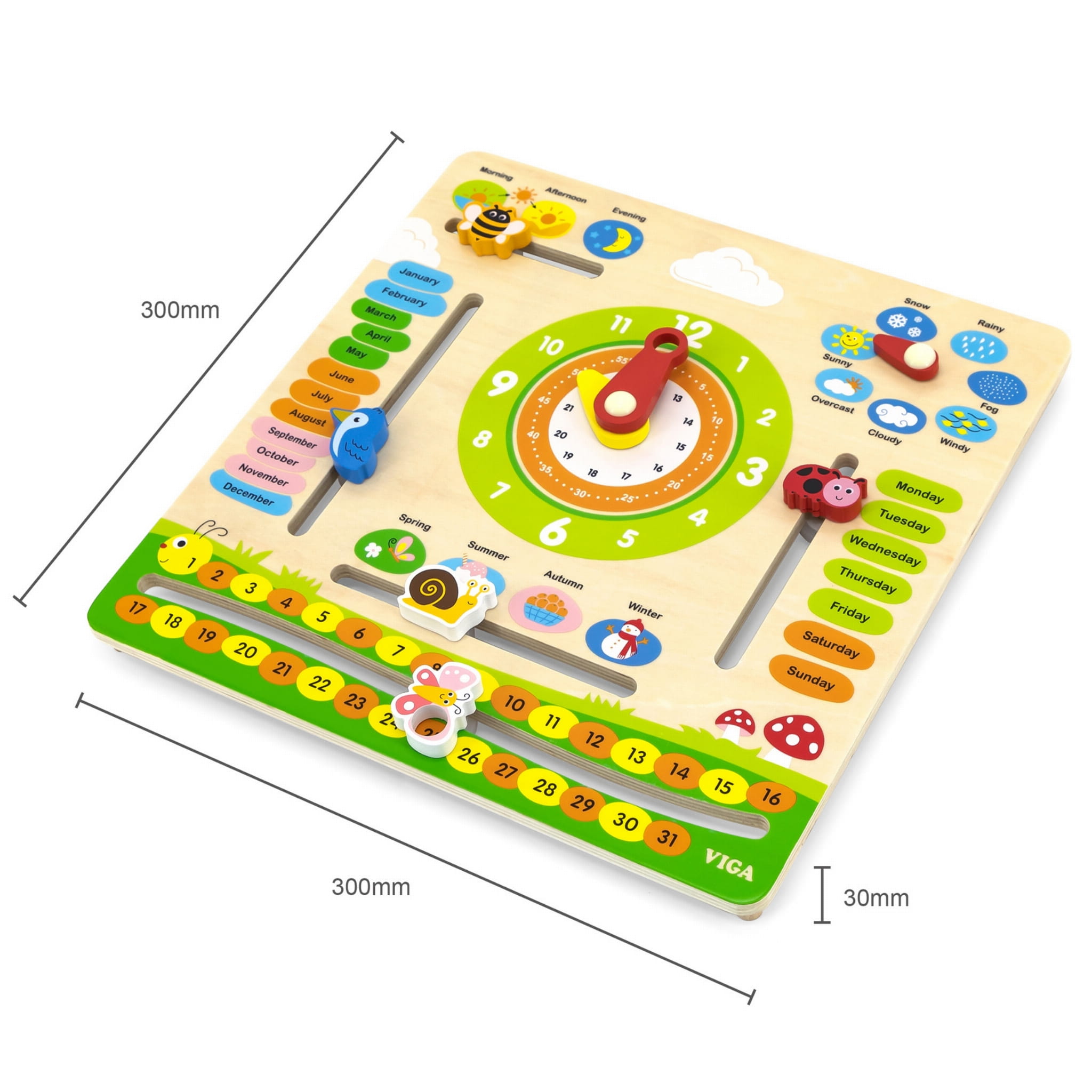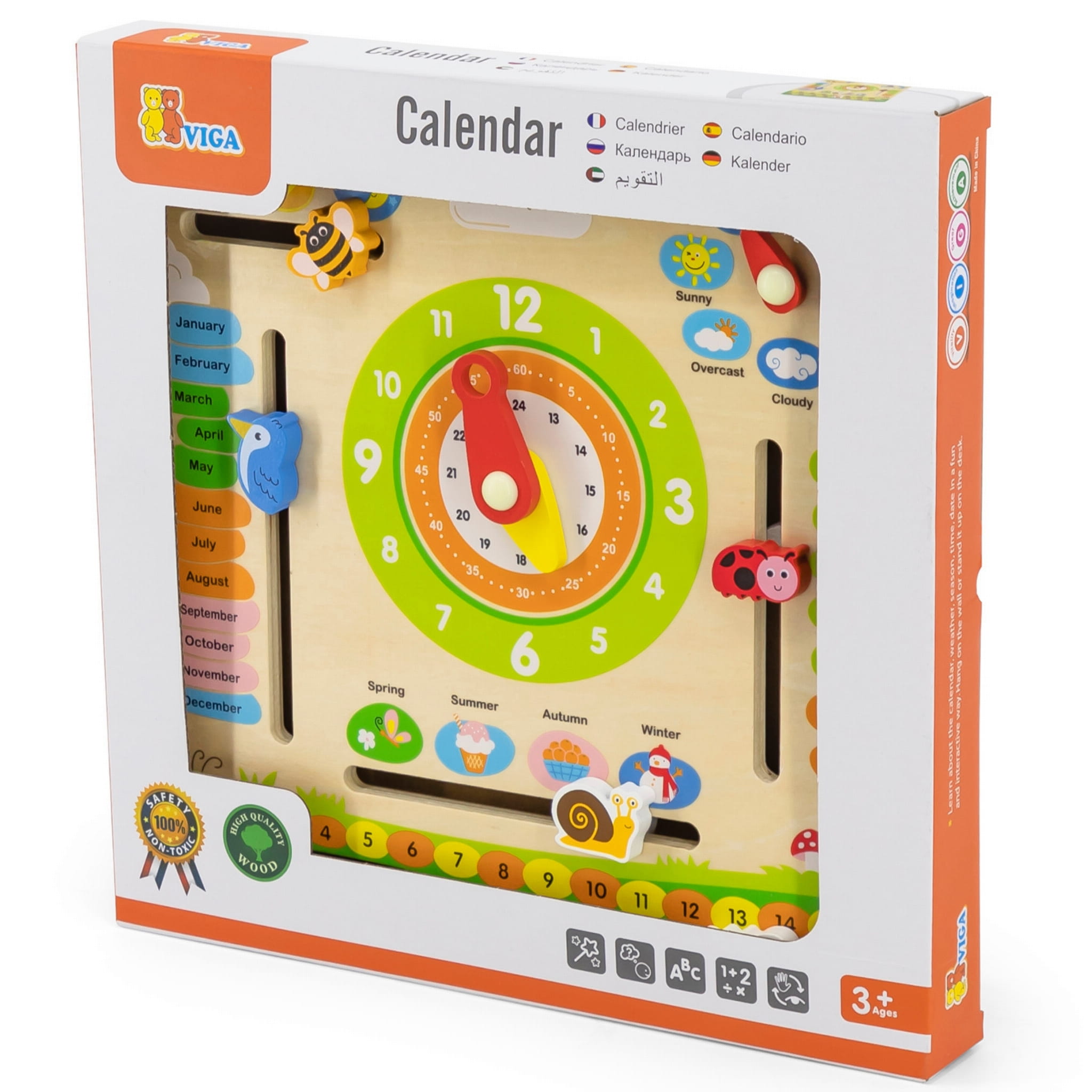 Ten edukacyjny kalendarz to idealna zabawka do nauki o upływającym czasie, zmianach pogody i porach roku. Dzięki kolorowym, ruchomym elementom dzieci mogą codziennie dostosowywać datę, wybierać odpowiednią pogodę i porę roku, a także uczyć się pojęć związanych z czasem. Można go zawiesić na ścianie lub postawić na biurku, co sprawia, że będzie zarówno funkcjonalnym, jak i dekoracyjnym elementem w pokoju dziecka.