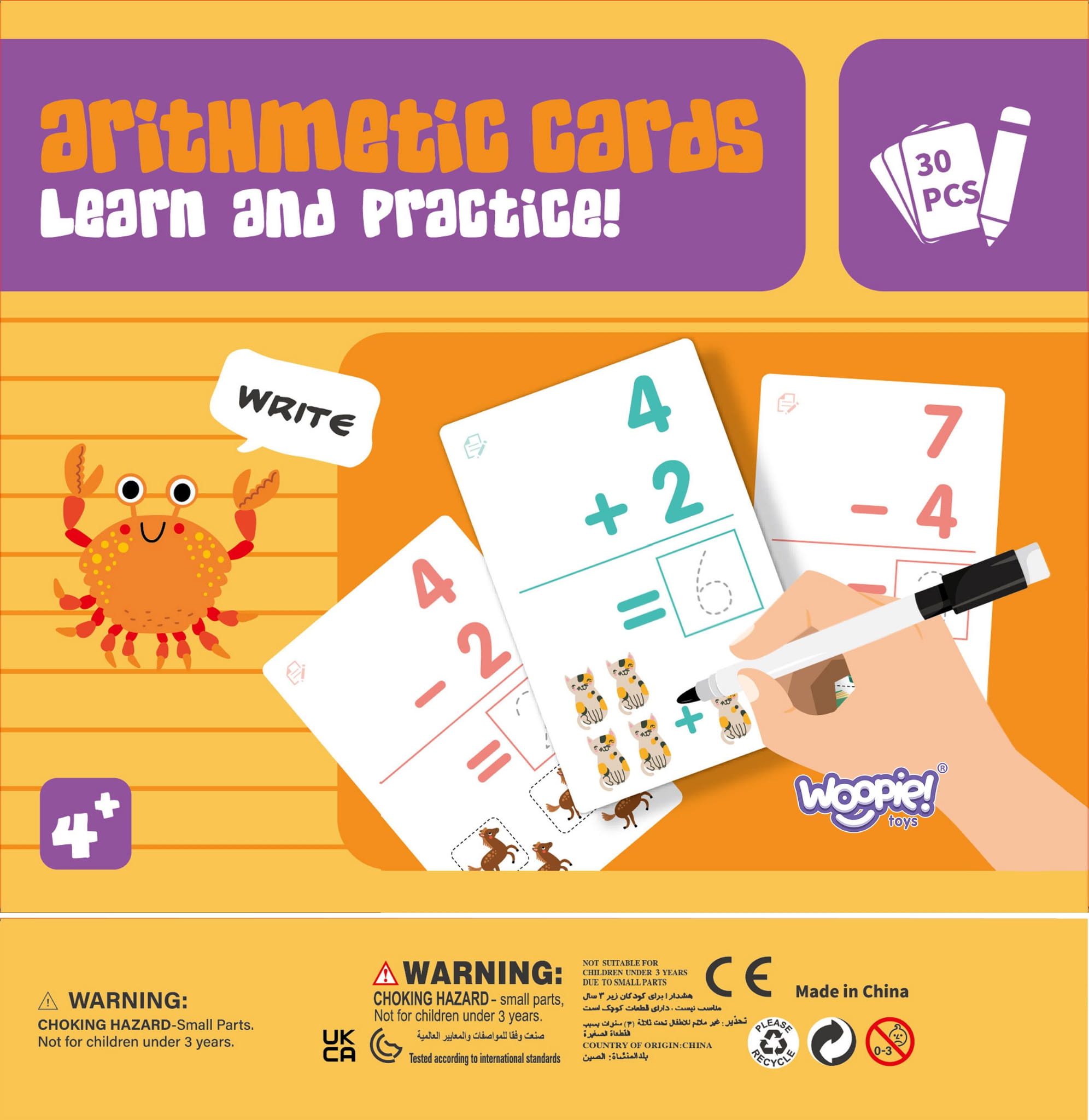 Fiszki do nauki liczenia od marki WOOPIE to świetny pomysł na prezent dla naszych pociech. To rewelacyjny zestaw, który składa się z 30 dwustronnych kart zachęcających dziecko do nauki cyfr i liczenia. Zestaw został wykonany tak aby dziecko mogło wielokrotnie trenować liczenie dzięki dołączonemu do zestawu ścieralnemu markerowi. Karty podzielone są na te z odejmowaniem i dodawaniem. Aby ułatwić naukę, karty zawierają dwa poziomy- na początku dziecko może korzystać ze strony gdzie działania matematyczne wzbogacają obrazki, którymi dziecko może sobie pomóc podczas obliczania wyniku. Druga strona kart to już obliczenia bez pomocy obrazków- Dzięki takiemu modułowi nauki, twoje dziecko nie będzie wyczuwało presji trudności nowej wiedzy, a rozwiązywanie przykładów matematycznych to będzie czysta przyjemność! Aby zmotywować swojego malucha do nauki, po każdym dobrze rozwiązanym przykładzie można narysować w rogu karty serduszko!
