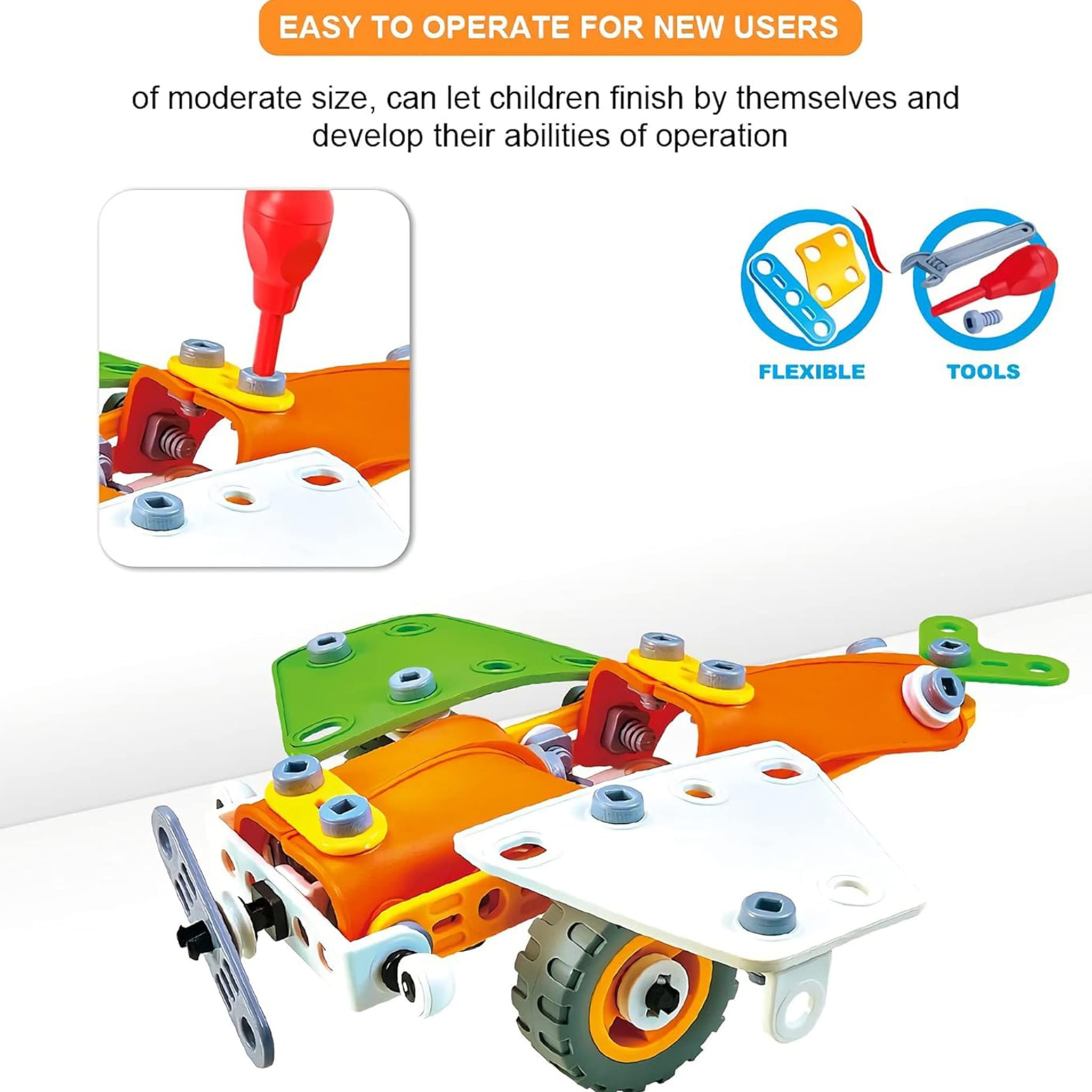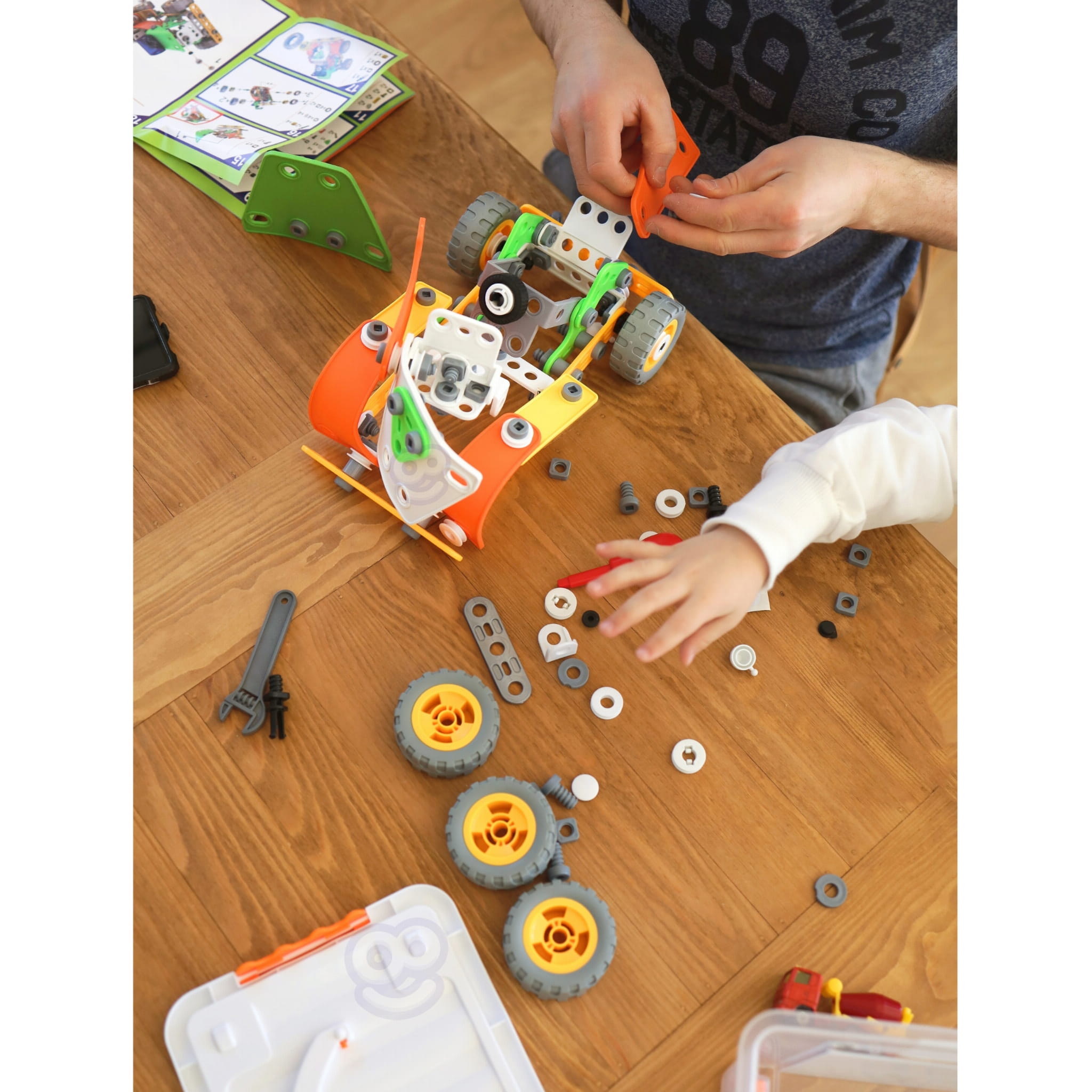- - Zestaw pozwala na zbudowanie 5 różnych pojazdów: robota, samolotu, quada, jeepa oraz helikopteru