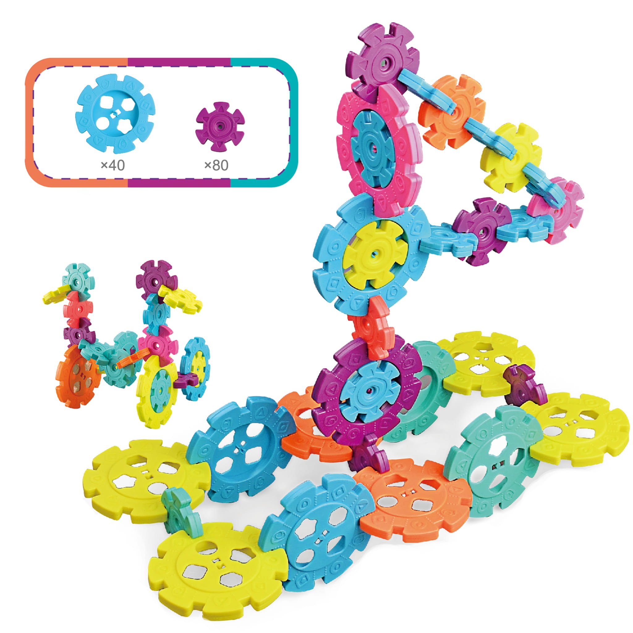 - - zestaw zawiera 120 elementów, w których skład wchodzi 40 dużych i 80 małych klocków,