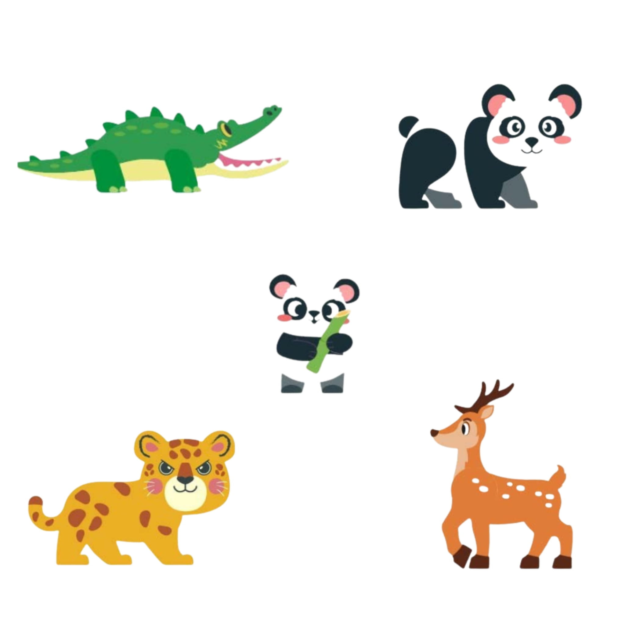 - - Tematyka zestawu: rzadkie zwierzęta (panda, lampart, jeleń, krokodyl).