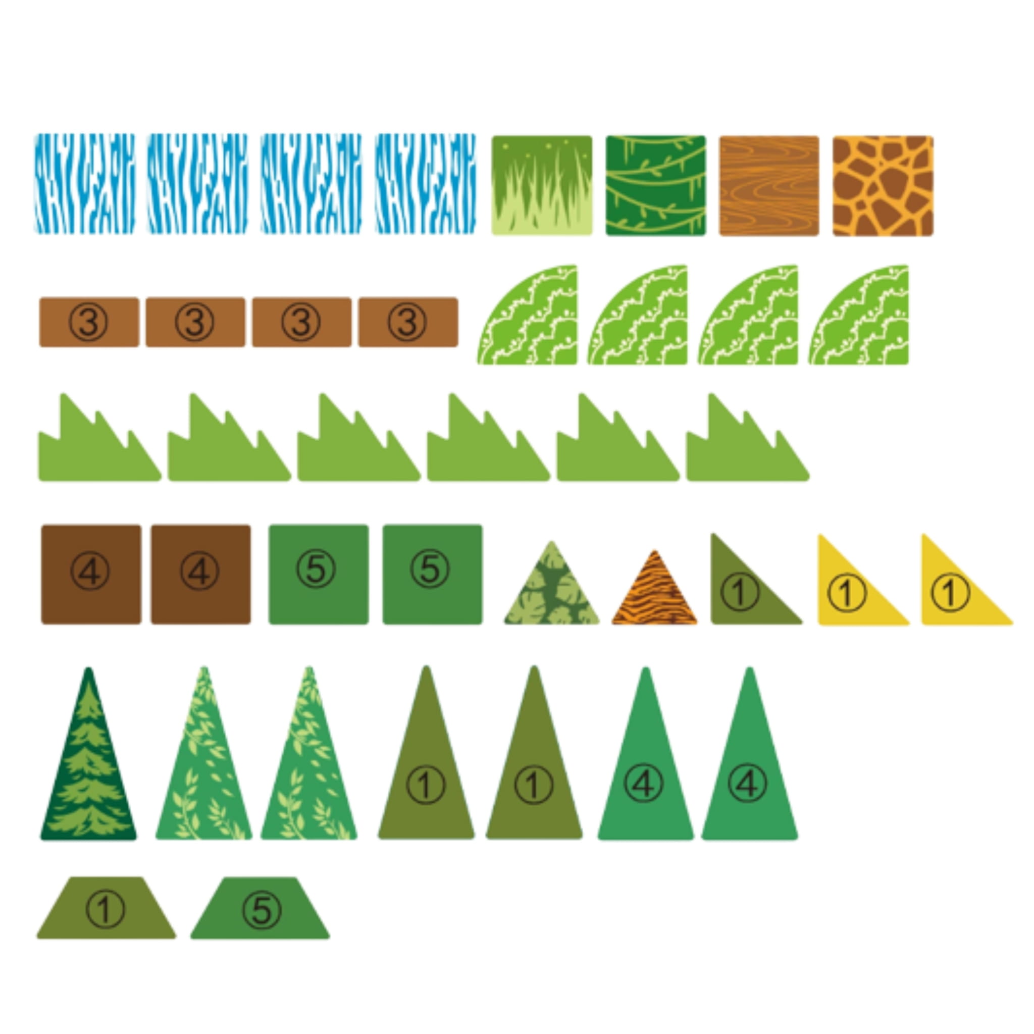- - 45 magnetycznych elementów w różnych kształtach i kolorach w tym wodospad, łuk, krzewy i drzewa.