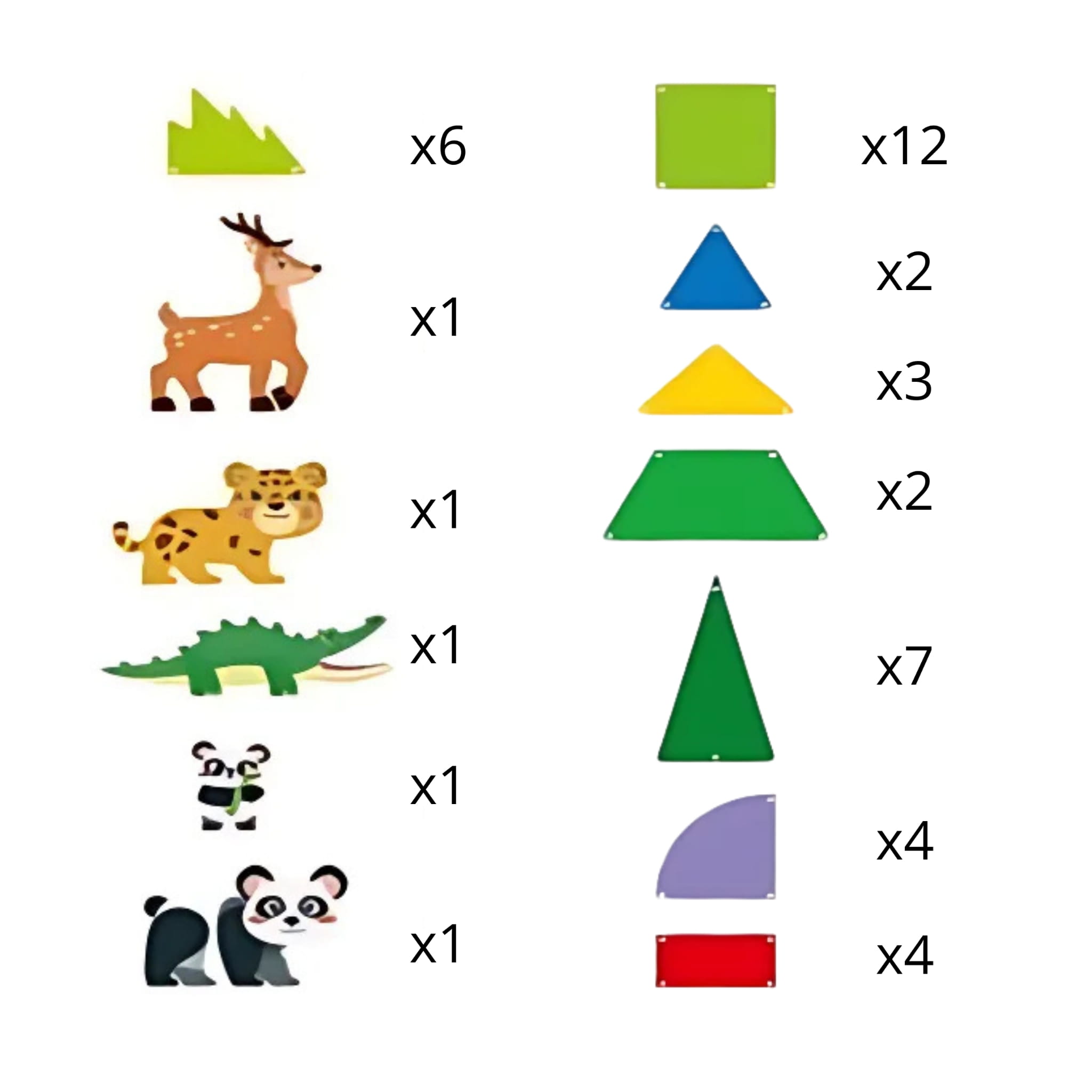 - - W zestawie 45 elementów, w tym magnetyczne płytki i figurki zwierząt.