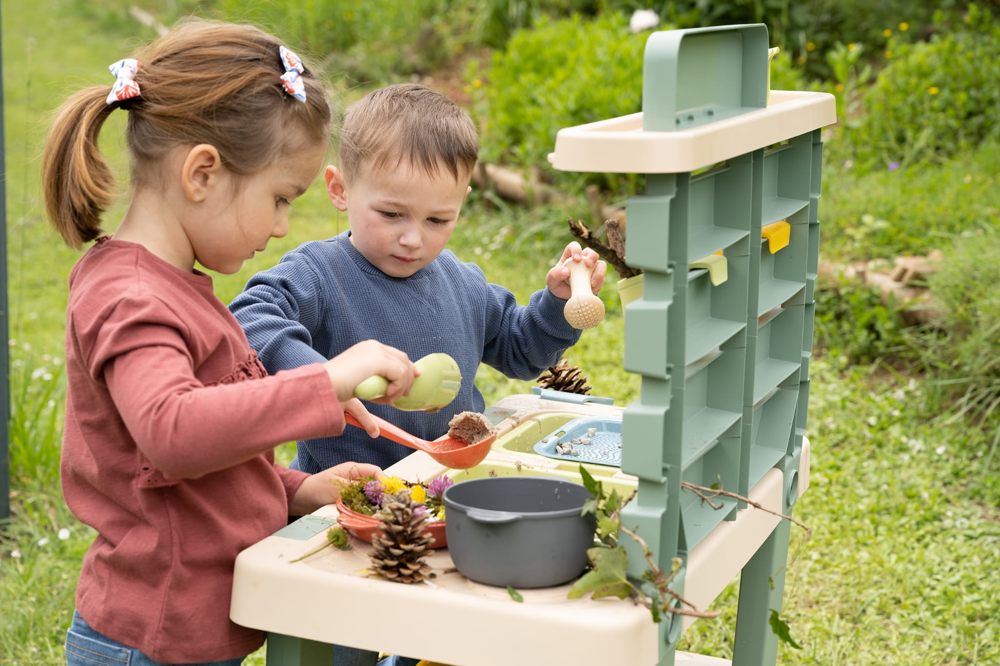 Smoby Life Kuchnia do zabawy wodą i piaskiem to pierwsza tego typu zabawka ogrodowa, która łączy w sobie radość zabawy wodą i piaskiem. Dzięki niej dzieci mogą tworzyć własne kuchenne historie na świeżym powietrzu, eksperymentując z wodą, piaskiem i naturalnymi materiałami znalezionymi w ogrodzie. To doskonały sposób na spędzenie czasu na świeżym powietrzu, rozwijając kreatywność, umiejętności manualne i społeczne.