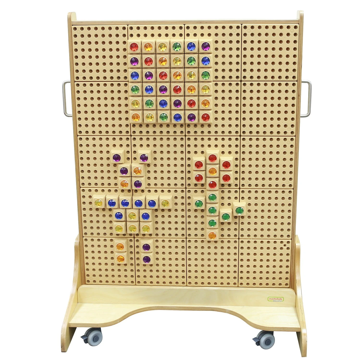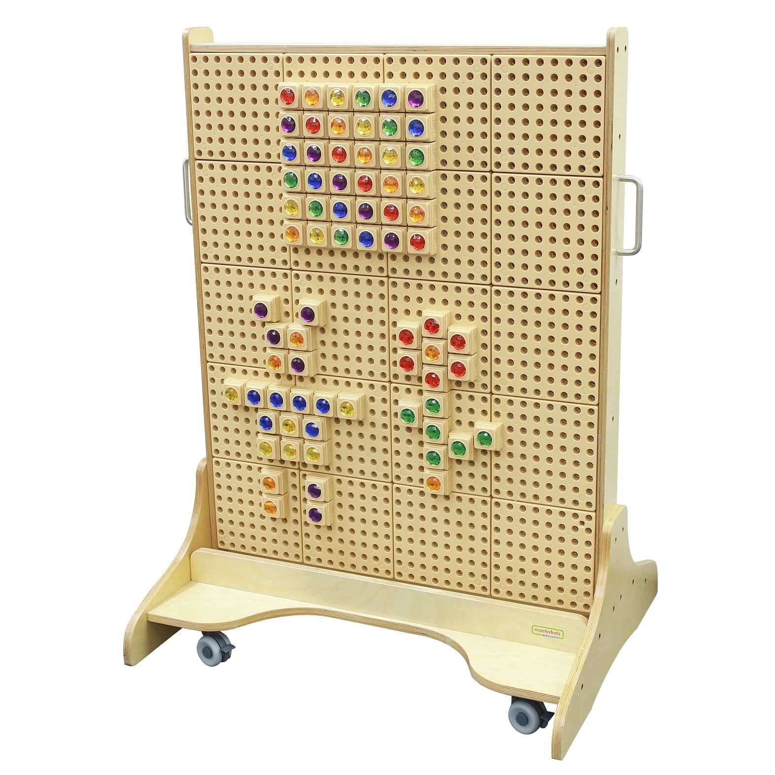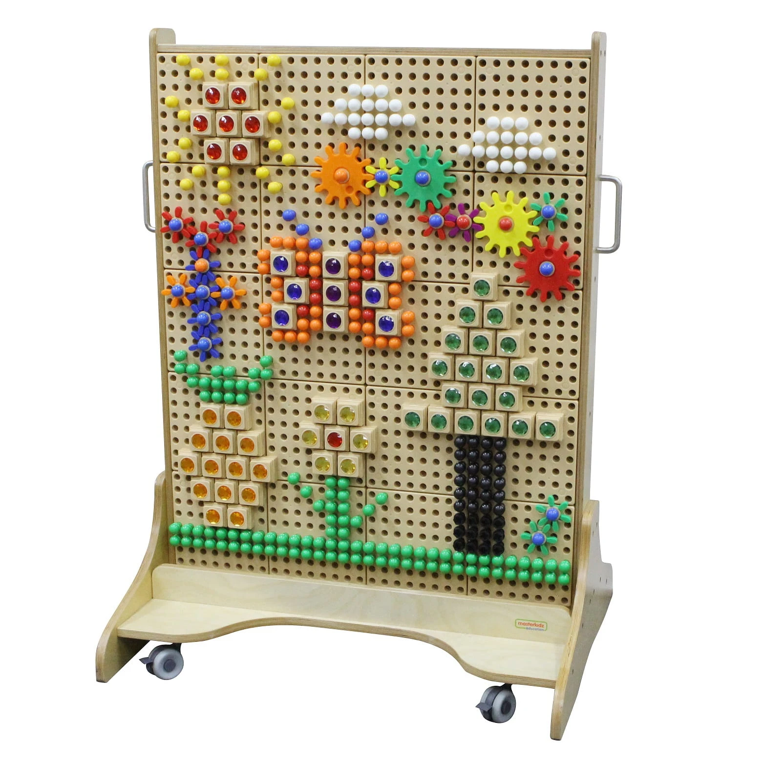 Tablica manipulacyjna STEM to wielofunkcyjna, mobilna ściana aktywności przeznaczona do edukacji i zabawy dla dzieci. Składa się z solidnej, drewnianej konstrukcji z perforowanymi panelami, które umożliwiają łatwe mocowanie różnorodnych elementów edukacyjnych i manipulacyjnych.