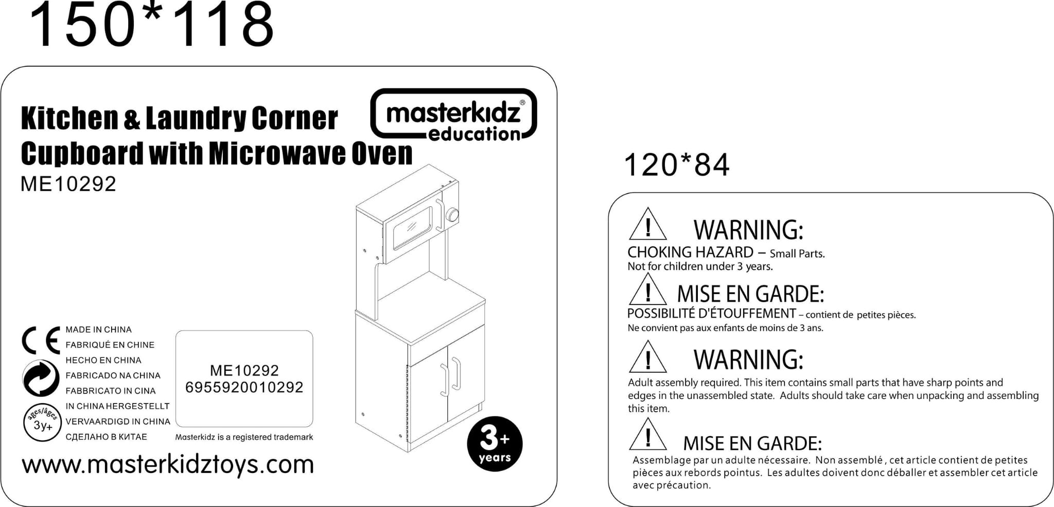 - Wyposażony w otwieraną szafkę kuchenną oraz imitację mikrofalówki z realistycznym panelem sterowania i pokrętłem