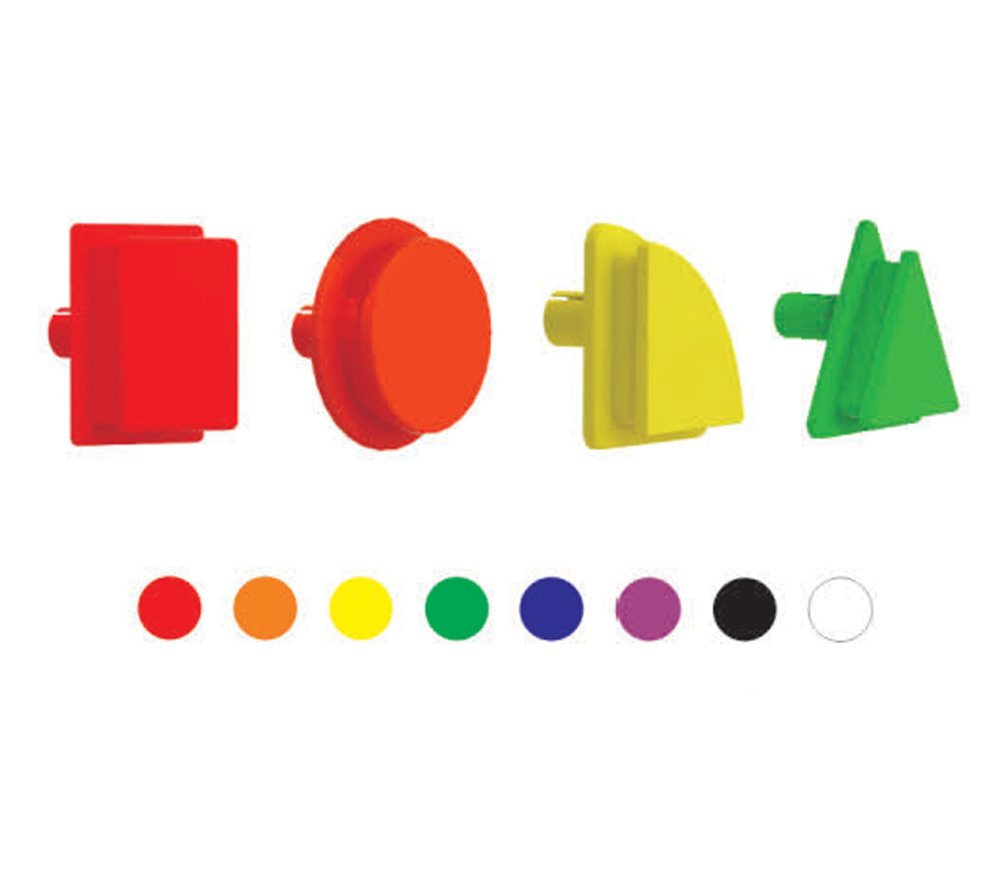 - - Kolorowe kołeczki w 4 różnych kształtach geometrycznych i 8 kolorach.