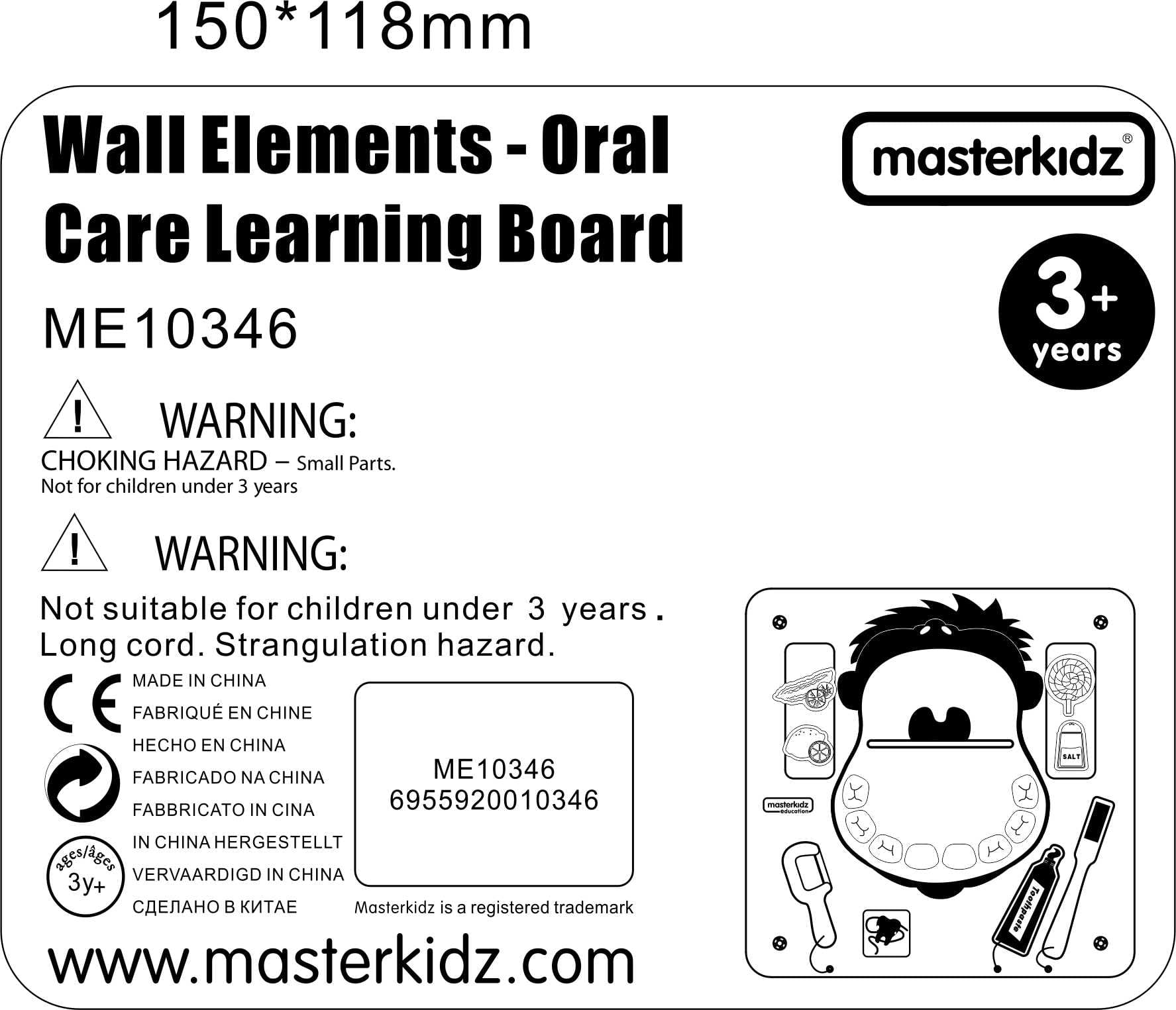 - - Elementy takie jak szczotka, nić dentystyczna, pasta znajdują się na sznurkach, dzięki czemu maluchy nie zgubią akcesoriów podczas zabaw.